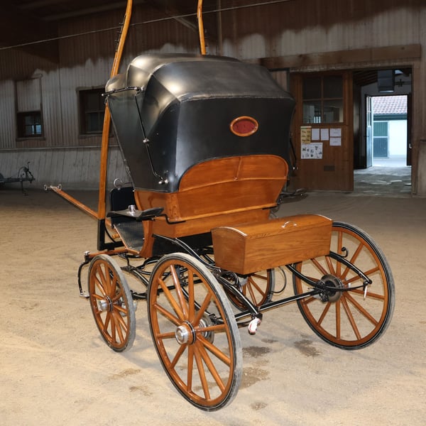Leitert Doktorwagen Kutsche Scheibenbremsen Leder Holz Marke: Leitert Kutschenart: Doktorwagen Pferdeart: Großpferde Zustand: Sehr guter Zustand (Holz in Top Zustand, Polster und Verdeck in Top Zustand) Farbe: Holz Natur mit schwarzem Verdeck (Innen roter Stoff-Bezug) Lieferumfang: Siehe Bilder Sollten Sie weitere Infos wie Maße o.ä. wünschen oder weitere Bilder wünschen, können Sie uns gerne diesbzgl. kontaktieren! HINWEIS: Die Kutsche wird im Auftrag einer privaten Reithofauflösung verkauft. Sie erhalten von uns eine Rechnung jedoch unter §25a Differenzbesteuerung. Bitte haben Sie Verständnis, dass es durch den Verkauf im Auftrag zu Verzögerungen von 1-2 Tagen kommen kann, sollten Rückfragen von Ihrer Seite aus sein, da diese zuerst an den Eigentümer weitergeleitet werden müssen. Abholung bevorzugt! Eine Lieferung kann innerhalb eines gewissen Umkreises gegen Aufpreis durchgeführt werden, schreiben Sie uns hierfür bitte an um mögliche Details zu klären. 1- Monatige Rücknahme möglich. 12-Monatige Gewährleistung! Inkl. Rechnung mit Differenzbesteuerung nach §25a UStG. Bei weiteren Fragen oder Anregungen nehmen Sie gerne Kontakt mit uns auf. Weitere interessante Artikel finden Sie auf unserer Shopseite.