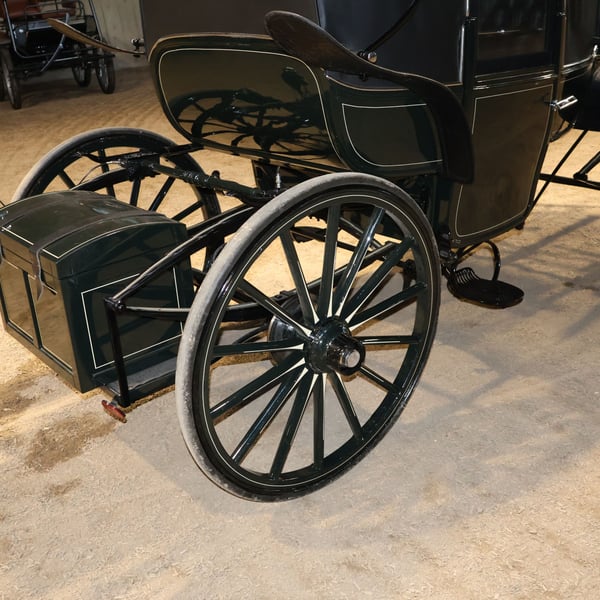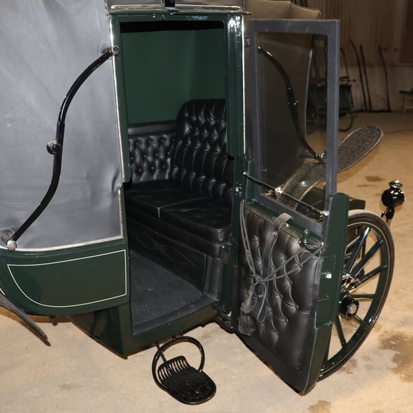 Wóz konny typu vis-à-vis, nowo odrestaurowany, na cztery konie, kufrowa konstrukcja, skóra