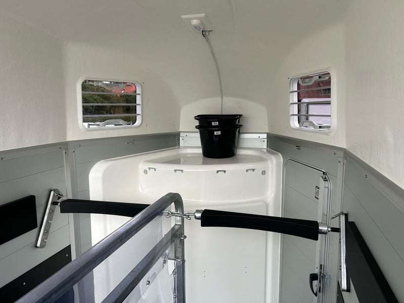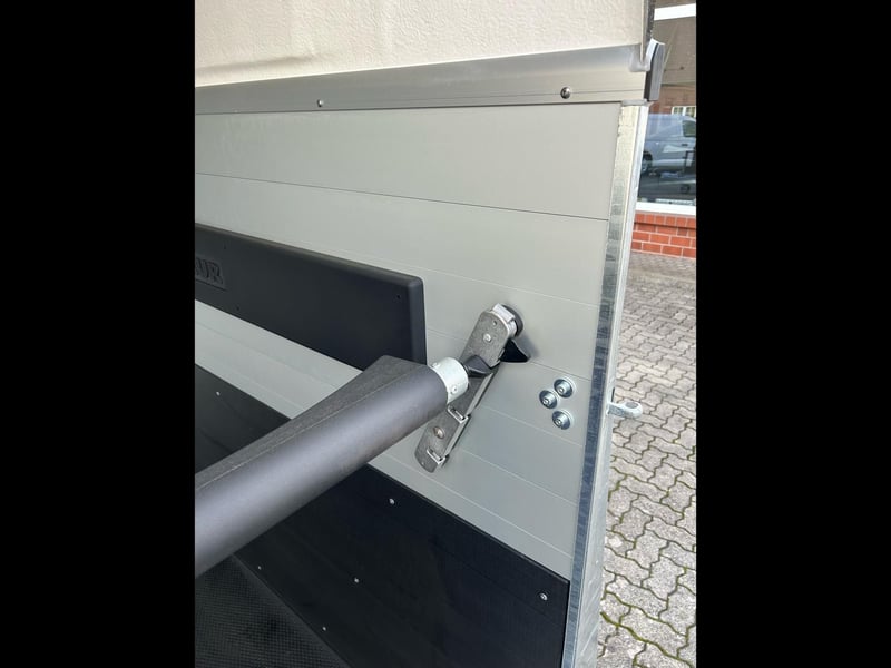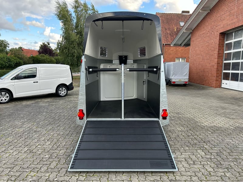 Humbaur Xanthos Aero 2400 Pferdeanhänger PKW Anhänger Alter: Neu (Produktionsjahr: 2025) 2 Jahre Hauptuntersuchung ab dem Tag der Erstzulassung Inkl. Zulassungspapiere (Kfz-Brief / Zulassungsbescheinigung Teil 2 und COC) Verfügbar ab: Sofort (auf Lager)! Finanzierung über unsere Partnerbanken möglich! Technische Daten Zulässiges Gesamtgewicht: 2.400kg Leergewicht: ca. 855kg Nutzlast: ca. 1.545kg Achsenanzahl: 2 Laderaumlänge: 3.447mm Laderaumbreite: 1.714mm Laderaumhöhe: 2.364mm Bremsenart: Gebremst, Auflaufbremse Fahrgestell: Tieflader (Räder neben Aufbau), Gummifederachsen Elektrik: 12V, 13 poliger Stecker Reifengröße: 195/65 R15 Sonderausstattung Seitenpolsterung links und rechts Serienausstattung Abschließbare Sattelkammer mit Sattelhalter, Trensenhalter, Spiegel, Netz, Innenbeleuchtung, Schaufel und Besen EquiDrive® Fahrwerk inkl. Radstoßdämpfer (100 km/h-Zulassung) Alu-BiComp-Boden 21mm (kein Holz - unverrottbar) Gummiboden 8mm stark Seitentrittschutz Aufbau aus doppelwandigen, eloxierten Aluminiumprofilen Aerodynamischer Poly-Bug Heckabstützung mit Beleuchtung Einstiegstür mit 3-Punkt-Verriegelung Auflaufklappe mit Trittleistengummi Geteilte und höhenverstellbare Brust- und Heckstangen mit EquiGuard® Panikentriegelung EquiLock® verriegelbare Trennwand Getönte Ausstellfenster in Polyhaube Polyhaube und Bug in Black Metallic Innenbeleuchtung Heunetzring Windschott Automatisches Stützrad Rahmen verzinkt V-Deichsel AL-KO oder Knott Achsen und Bremsanlage Zubehör (aufpreispflichtig) Alufelgen Silver / Black Sattelablagestange für 2 Sättel (außen) Schwenkbare Sattelablage für 1 Sattel (außen) Dachfenster Fohlengitter Hecktür dreh- und schwenkbar Durchgehende Boxenstange zum Fohlentransport Trittschutzgummi für Sattelkammer Seitenpolsterung links und rechts Kopftrennwand für Mitteltrennwand Trennwand mit Holzplatte Abschließbare Sattelkammer mit ausziehbarem Sattelhalter, Trensenhalter, Spiegel, Netz, Innenbeleuchtung, Schaufel und Besen Ohne abschließbare Sattelkammer Sattelkammer Western mit Sattel-, Steigbügel- und Trensenhalter Planenrollo PVC anstatt Windschott Polyhaube in Farbe GFK-Dachheckklappe in Farbe Verschleißmatte vorne Verschleißmatte hinten Abdichtung Heckklappe gemäß EC Nr. 1/2005 Konturmarkierung Pferdeanhänger umlaufend auf Heckklappe Anhängerschloss Reserverad 195/65 R15 inkl. Reserveradhalter Fahrzeuganlieferung deutschlandweit Zulassung deutschlandweit Überführungskennzeichen (5 Tage gültig) Hinweis Gewichtsangaben können je nach Ausstattung abweichen; Irrtümer, Zwischenverkauf und Änderungen vorbehalten!