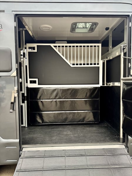 Renault Master Equita 3-Sitzer - neues Renault Modell mit Automatikgetriebe Chassis • Renault Master • 2.3L CDI Motor mit 170 PS • neueste Euro 6d-TEMP Abgasnorm • Zulässiges Gesamtgewicht: 3.500 kg - optional auflastbar auf 4.000 kg) • Serienmäßig mit 2.500 kg Anhängelast • Multimedia-System mit Bluetooth-Verbindung für Telefon und Audio • AppleCar-Play Anbindung • Navigationssystem • Klimaanlage im Fahrerhaus • Tempomat • LCD-Monitor zur Überwachung des Pferderaums und Rückfahrkamera Grundausstattung Renault Master Equita • Equita Aufbau – robust, leicht & isoliert • Transport für 2 Pferde rückwärts stehend • Seitenrampe mit niedrigem Einstieg, ergonomisch & pferdefreundlich • Gummierter, rutschfester Boden, wasserfest & leicht zu reinigen • Gepolsterte, verstellbare Edelstahl-Trennwand • Sattelkammer mit höhenverstellbarem Sattelhalter & Trensenhaken • Zwei Durchgänge zur Sattelkammer für optimale Erreichbarkeit beider Pferde • Dachlüfter und Dachfenster für optimale Frischluftzufuhr und Luftzirkulation • Stauraum über dem Fahrerhaus • LED-Beleuchtung Besichtigungen bitte nur nach vorherhiger Terminvereinbarung! Irrtümer und Zwischenverkauf vorbehalten.