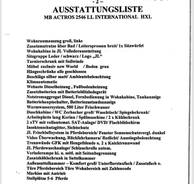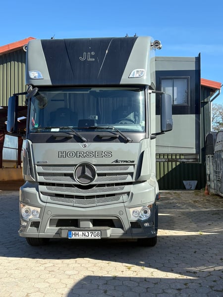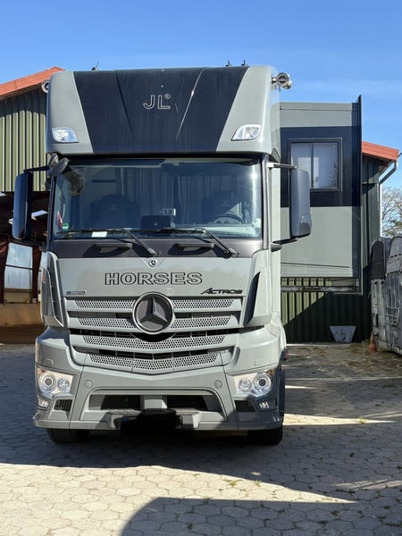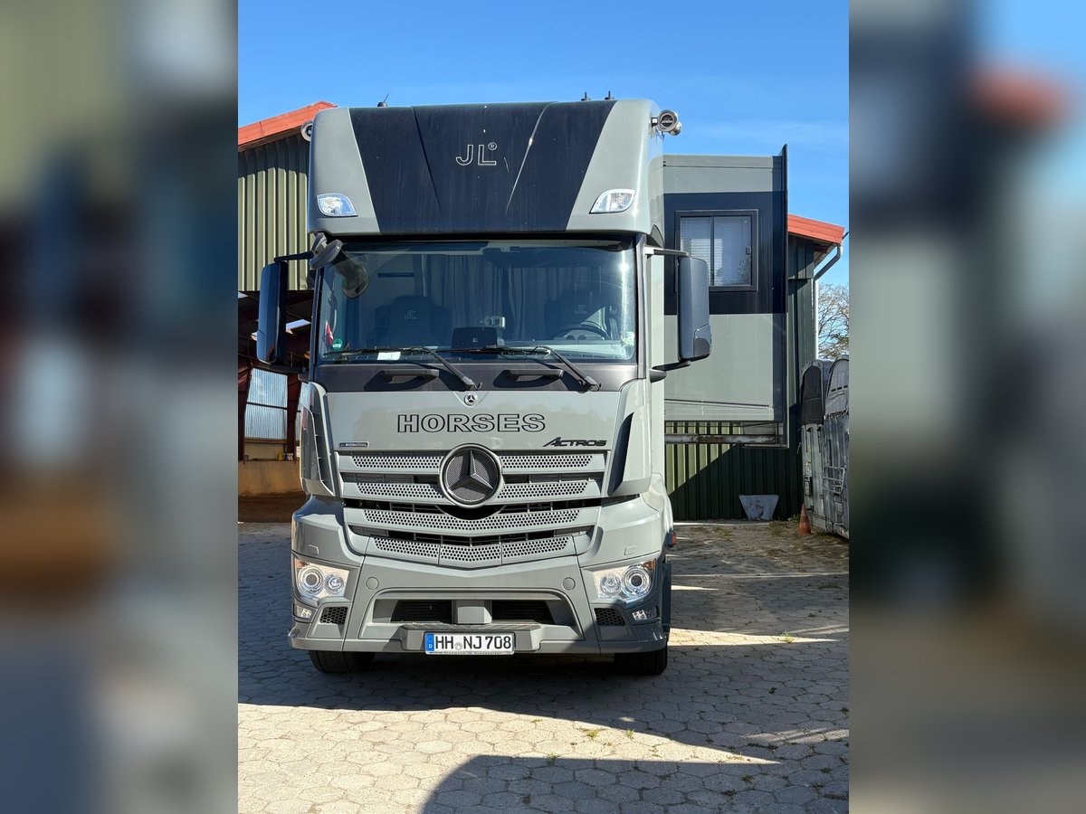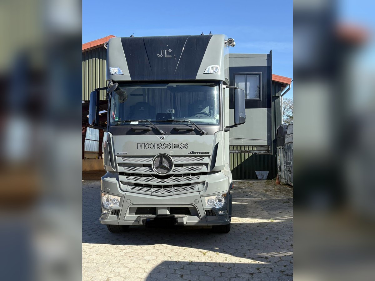 MB Actros aus Ende 2020 KM 46.000 26 Tonnen 3-Achser (mitlenkende Hinterachse) 6 Pferde Stauraum außen Rampe seitlich und hinten Balance-Boden Pferdeabteil Pferdedusche Notstromgenerator Außen ein zusätzlicher Kühlschrank Wohnabteil mit bis zu 5 Schlafplätzen Großer Kühlschrank mit Gefrierfach Herd Fußbodenheizung Klimaanlage Standheizung Webasto Sat-Anlage Sehr großes Bad mit Häckslertoilette Handtuchheizung 500L Frischwassertank 300L Abwassertank