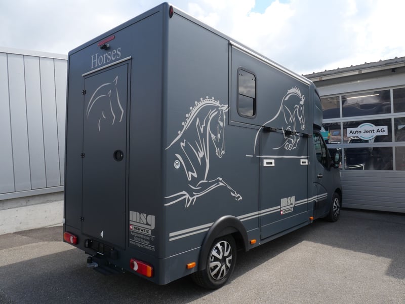 *Wir suchen Pferdetransporter/Selbstfahrer* Garantie 3 Mte/5'000km 07.2021, 8'000km Neu ab MFK bei Verkauf Neu ab Service Basisfahrzeug: Renault Master T35 Aufbauer: MSG Automatikgetriebe 2.3 TDI 180PS mit EURO-6 Gedämpfter und versiegelter Gummiboden Winterreifen für besseren Gripp auf nassen Wiesen 3 Sitzplätze Klimaanlage im Fahrerhaus Zentralverriegelung mit Fernbedienung Fahrerhaus Radio mit DAB+ Bluetooth Freisprecheinrichtung Navigation ABS Airbag El. Fenster und Spiegel Rückfahrkamera Innenraumkamera Dachlüfter Beluchtung im Innenraum 865kg Nutzlast laut Fahrzeugausweis (+ 105kg Waagtoleranz) 3'500kg Gesamtgewicht Anhängelast 2'500kg Länge 6.2m, Breite 2.2m, Höhe 3.1m