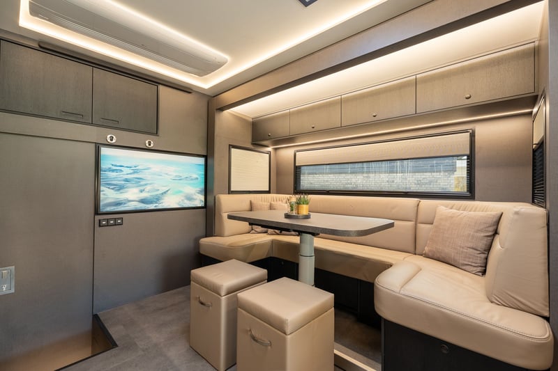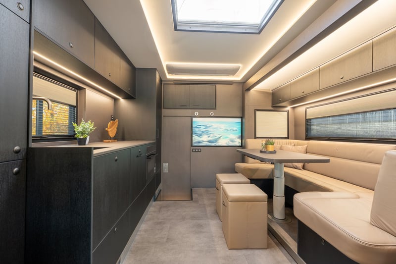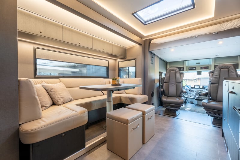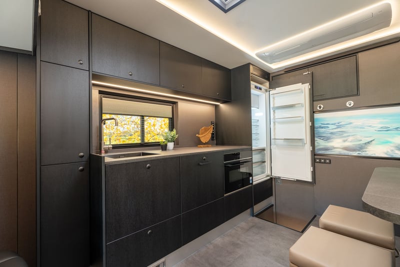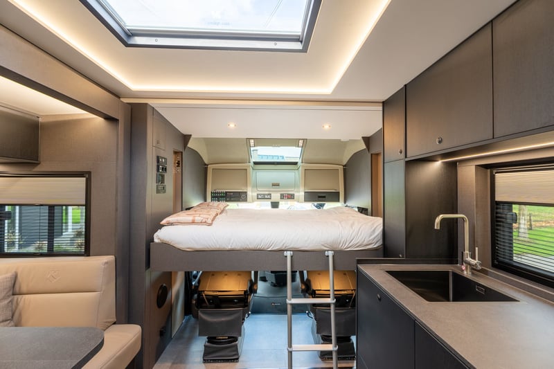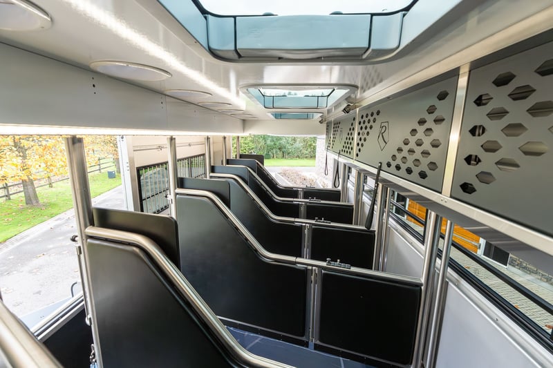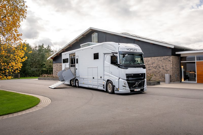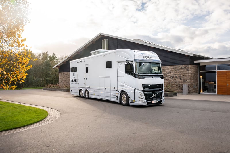 Roelofsen RR6 XL Profiliner Horse Truck Geeignet für bis zu 5 Pferde, extra großer Wohnbereich mit Pop-Out und Pop-Up, insgesamt 4/5 Schlafplätze Es gibt kein Standardchassis für die RR6 Profiliner. Häufig verwendete Chassis-Marken sind Volvo, Scania oder Mercedes. Aufbau • Robuster und hochwertiger Aluminium-Aufbau • Drei Kameras im Pferdebereich und eine an der Rückseite. • Kisten unter dem Ladeboden für zusätzlichen Stauraum Wohnbereich • Extrabreites Pop-out mit Sitzgruppe in Lederausstattung und Tisch – kann auch als Schlafmöglichkeit genutzt werden • Voll ausgestattete Küche mit Kombi-Backofen, Kühlschrank mit Gefrierfach und Küchenarmatur mit Spüle • TV im Wohnbereich • Elektrisches Hubbett im Fahrerhaus für zwei Schlafplätze • Pop-up über dem Badezimmer mit zwei Schlafplätzen • Badezimmer mit Dusche, Toilette und Badmöbel • Zentralheizung und Fußbodenheizung im Wohnzimmer, Flur und Badezimmer • Frischwassertank mit ca. 690 Litern und Abwassertank mit ca. 225 Litern Pferdeabteil • Eingerichtet für bis zu 5 Pferde • nachhaltiger Soft-Gummiboden • mit Gummi verkleidete Wände • hochwertige Trennwände aus Edelstahl mit transparentem PVC-Matten an der Unterseite Die Trennwände sind einfach verstellbar, sowohl vorne als hinten im Abstand von 10 cm. • Kickpads an der Rückseite • Edelstahl-Deckenhalterung • Schiebefenster an der Vorder- und Rückseite der Pferde mit Gittern • Elektrische Ventilatoren zur Belüftung und mehrere Dachluken • LED-Beleuchtung im Pferdebereich • Sichere Heck- und Seitenrampe, mit Gummi belegt und integrierten horizontalen Latten. Bietet ausreichenden Grip bei jedem Wetter • Rampenbegrenzer für zusätzliche Sicherheit beim Ein- und Ausladen • Abschlussplanke mit transparentem PVC für die Hinter- und Seitenrampe • Ausziehbare Edelstahl-Treppe am Eingang zum Wohnbereich • Außentür für den Zugang zum Pferdebereich und/oder zur Sattelkammer Mehrere Extras wie bspw. Temperaturregelungen für das Pferdeabteil, elektrische Winde oder Dachluken, schwenkbare Kopfteile oder Hengsttüren, sowie ein mobiler Turnierschrank mit Hebesystem im seitlichen Staufach sind auf Anfrage jederzeit möglich. Ebenso im Wohnbereich können Sie aus verschiedenen Extras, wie einer Waschmaschine oder einem Geschirrspüler wählen. Weitere Informationen und Bilder, sowie Informationen zu Lieferzeiten oder verfügbaren Modellen und Preisen je nach Ausstattung gerne auf Anfrage. Wir beraten Sie als Roelofsen-Händler für Deutschland und Österreich jederzeit gerne. Irrtümer und Zwischenverkauf.
