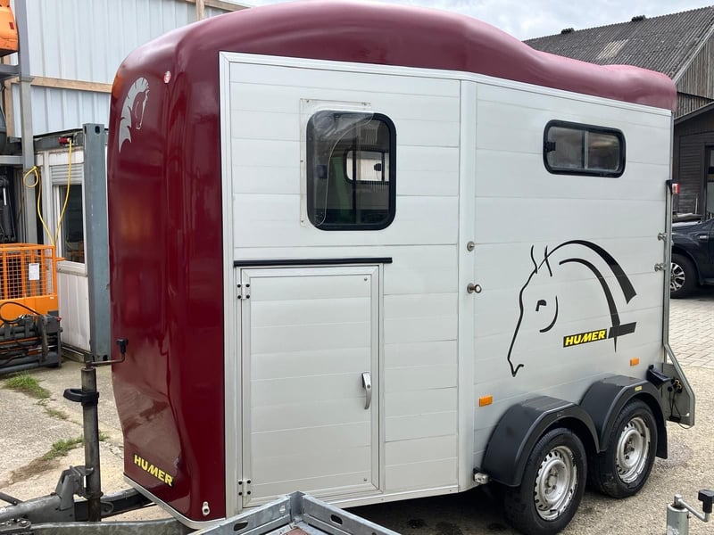 Aluminium horse trailer Cheval Liberte Pullman (for 2 horses), year of manufacture 2019 - Polyester roof and front (aerodynamic design) - Pullman V2 low-floor chassis - Aluminum rear ramp with swing and pivot function, rubber matting - Lockable tack room with large sliding window door - Canvas roll-up cover (air- and light-permeable) - Mounted shock absorbers on the axles, approved for 100 km/h - Lockable side door (large size with sliding window) - Interior lighting with switch - Vehicle documentation included Additional features - Aluminum floor with 8 mm rubber matting (glued and sealed) - Tinted sliding windows on both sides (left and right) - Divided and adjustable front and rear partition bars Price: €6,999 + VAT Photos taken on September 1, 2025