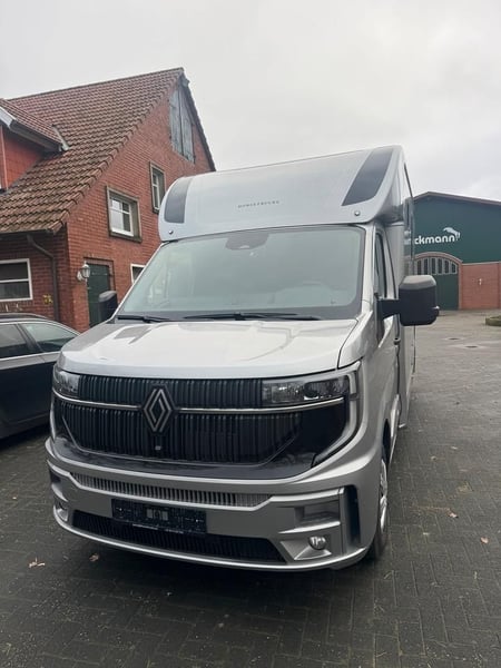 Renault Master Haras ATM 1-2 Pferde 150 PS Neues Modell direkt Verfügbar,Video Überwachung ,Klima, Tempomat,Schalter, Bluetooth,Rauchsiber Metallic, Anhängerkupplung 2,5t, Edelstahl Hengstausführung, Tag- Nachtlicht,sichere Polsterung für die Pferde ,leicht verstellbare Leergewicht: 2670 Kg Tragfähigkeit: 830 kg bei 3500 kg in total. Up to 4500kg possible 6,3m long 2,15 m wide 2,6 m high 576 Km