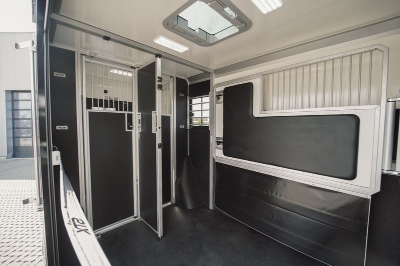If you’re looking for the ultimate in luxury and safety for you and your horse, choose our new STX 2 Horses Exclusive Mercedes Sprinter. Built on the prestigious Mercedes chassis, this model sets a new standard in elegance and performance. Featuring partitioned and padded stalls, it ensures maximum comfort for your horse. The STX 2 Horses Exclusive turns every journey into a first-class experience for both you and your horse. Brand: STX Chassis: Mercedes Sprinter Weight: 3,5T Power (HP): 143 Features: Cabin Area: Leather seats with armseats + seatwarming Radio/MP3/Bluetooth - GPS Electric windows and mirrors Central locking system Trailer hitch Air conditioning Automatic gearbox Cruise control Fog lights Horse Area: Adjustable partition Electrical air extractor Skylights and lateral windows LED lightning blue/white Tackroom with saddle and bridle holders Rubber flooring Fastening chains Immediately available!