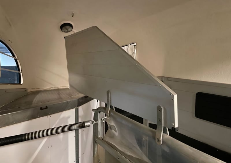 Original Böckmann Kopftrennwand Aluminium (Trennwand, Hengsttrennwand, Hengstgitter) Kann auf der Trennwand im Pferdeanhänger angebracht werden. Wird nicht mehr benötigt. Zustand siehe Bilder, alle Schrauben vorhanden. Nachrüstsatz Neu bei Böckmann laut Website 451,00 € Kein Versand, nur Abholung