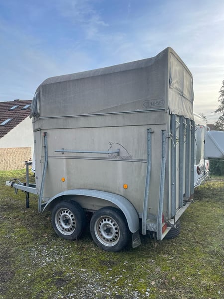 Biete meinen mit "grünen Kennzeichen" zugelassenen Böckmann Classic mit Holzboden zum Verkauf an. TÜV bis 08/26. Er hat eine Sattelkammer und Stangen zum Aufhängen von Sattel etc. an den Seiten vom Hänger. Der Hänger war bis Anfang des Jahres in Gebrauch (max.2x im Jahr). Bj.99., guter Zustand. Sofort einsatzbereit.
