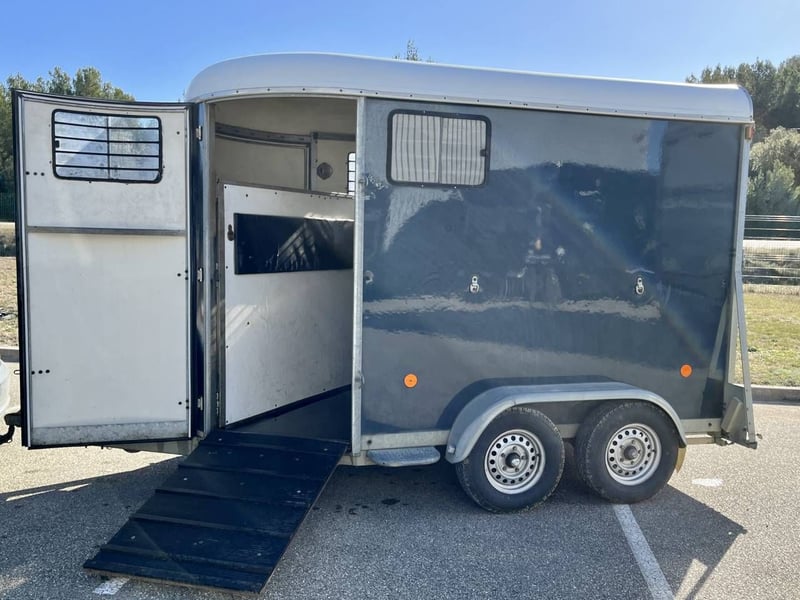 Marque: Fautras Modèle: OBLIC + 2 Année du Model: 2010 Etat: Occasion Capacité: 2 Chevaux Pont: Avant. Chevaux voyagent: De biais AVANT PONT AVANT. Poids à vide : 780 kg PTAC : 2400 kg