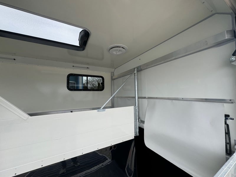 Ausstattung: 2 Stellplätze und Wohnabteil mit Dusche Neuer 2 Pferdeanhänger mit Wohnabteil zulässiges Gesamtgewicht 3500 Kg; Bodengruppe aus Aluminium Snaplockprofilen mit Spezialgummibodenmatte verklebt; 30 mm starke Vollpoly Seiten- und Dachpanelle, aerodynamisches Frontdesign Seitenrampe aus Aluprofilen mit Trittschutzgummi, darüber Lüftungsklappe; Planke an der Rampe verstellbare Trennwand mit Halsaufsatz; Seitentür mit einklappbarer leicht zu bedienender Treppe; große Aufenthaltskabine vorne 2 Seitenfenster links und ein Seitenfenster rechts; eine Dachluke; Fester Futtertrog darunter Sattelbox - auf Wunsch mit mobilem Sattelschrank gegen Aufpreis Voll ausgestattete Wohnung: Dusche viele Staufächer Microwelle Kühlschrank 2 Sitzplätze mit absenkbarem Tisch zum Stockbett umbaubar 2 Schlafplätze Spüle Ausstellfenster vorn Video+++++Video+++++Video+++ https://youtu.be/totvbZVDHF4 Sofort Verfügbar Anlieferung möglich gegen Aufpreis Besichtigung nur nach Terminabsprache möglich Anfragen unter 01606106131--00491606106131 Wir haben Ständig Pferdeanhänger auf Lager auch Hengstausstattung mit Wohnabteil oder mit Sattelkammer