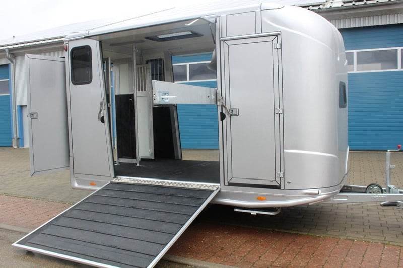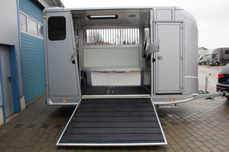 New special model stallion equipment with 2 side ramps and large tack room Special model Absolute novelty with 2 side ramps ++++++++++++ Dickenherr Anka 2 side ramps +++++++++++Special model +++++++ Horse trailer stallion equipment special model 2 side ramps left and right for loading your horses with the new special model you can now load or unload your horses load or unload your horses individually You can now access each horse individually from each side and the large rear door gives you another way to get to each horse individually With the large tack room with 2 storage trays and a folding bed, you have enough storage space available and can also rest on the folding bed from time to time Permissible total weight 2.7t Piece load 150KG Available immediately Viewing by appointment only Price on request Inquiries under 01606106131--00491606106131