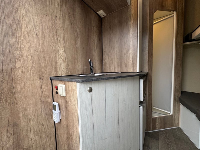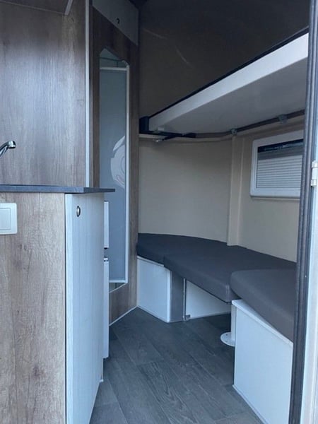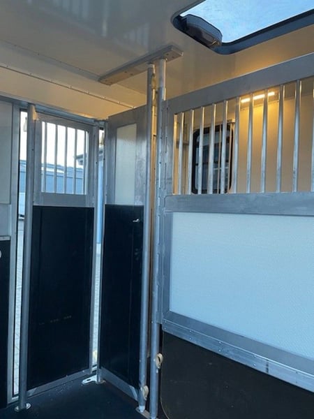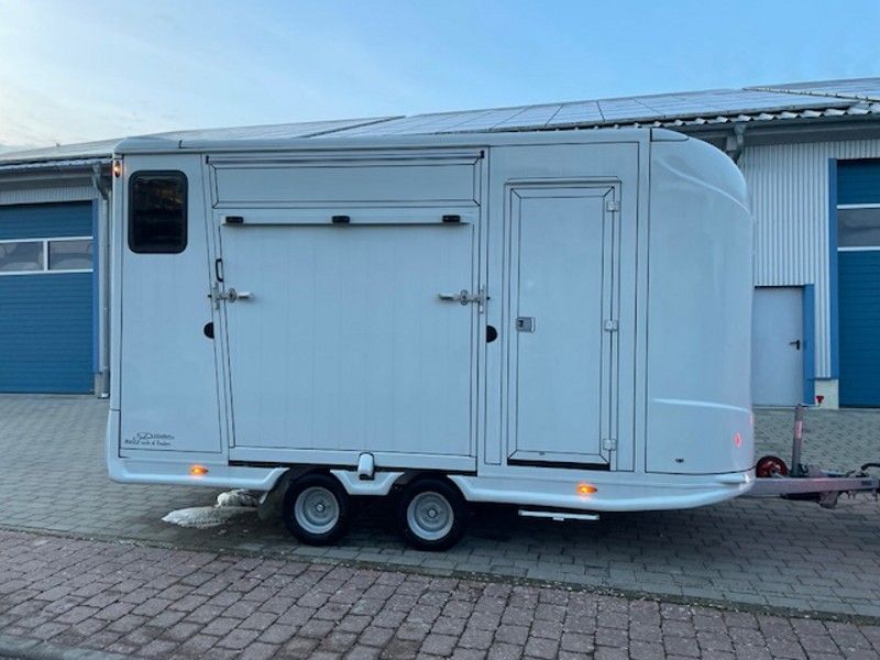 Gebrauchter Pferdeanhänger in Hengstausstattung mit Wohnabteil Modell 2024 1 Vorbesitzer Tüv bis 11/2027 Zulässiges Gesamtgewicht 3,5t Ausstattung: 2 Stellplätze in Hengstversion und voll ausgestattete Wohnung verzinktes Fahrgestell zulässiges Gesamtgewicht 3500 Kg; Leergewicht (1949 kg) Bodengruppe aus Aluminium Snaplockprofilen mit Spezialgummibodenmatte verklebt; 30 mm starke vollisolierte Seiten- und Dachpaneele, aerodynamisches Frontdesign Abschließbare Einstiegstür rechts mit klappbarer Einstiegstufe Seitenrampe mit Lüftungsklappe darüber 2 Fallfenster an den Pferdeköpfen 1 Längsschiebefenster gegenüber; 1 große Dachluke 1 Hengsttrennwand mit durchsichtigem Behang 1 kompletter Beißschutz Planke an der Rampe 2 vergitterte Innentüren am Heck, jedes Pferd ist separat erreichbar Eine große Außentüre am Heck Wohnabteil mit Dusche, 2 Sitzplätzen und Tisch zum Stockbett umbaubar, Küchenzeile mit Spüle, Microwelle und Kühlschrank, viele Staumöglichkeiten. Ersatzrad montiert Sofort Verfügbar Besichtigung nur nach Terminabsprache möglich Preis liegt bei 25.900€ brutto netto keine Mwst ausweisbar Wir haben Ständig Neue Anhänger auf Lager die sofort verfügbar sind Anfragen unter 01606106131---00491606106131