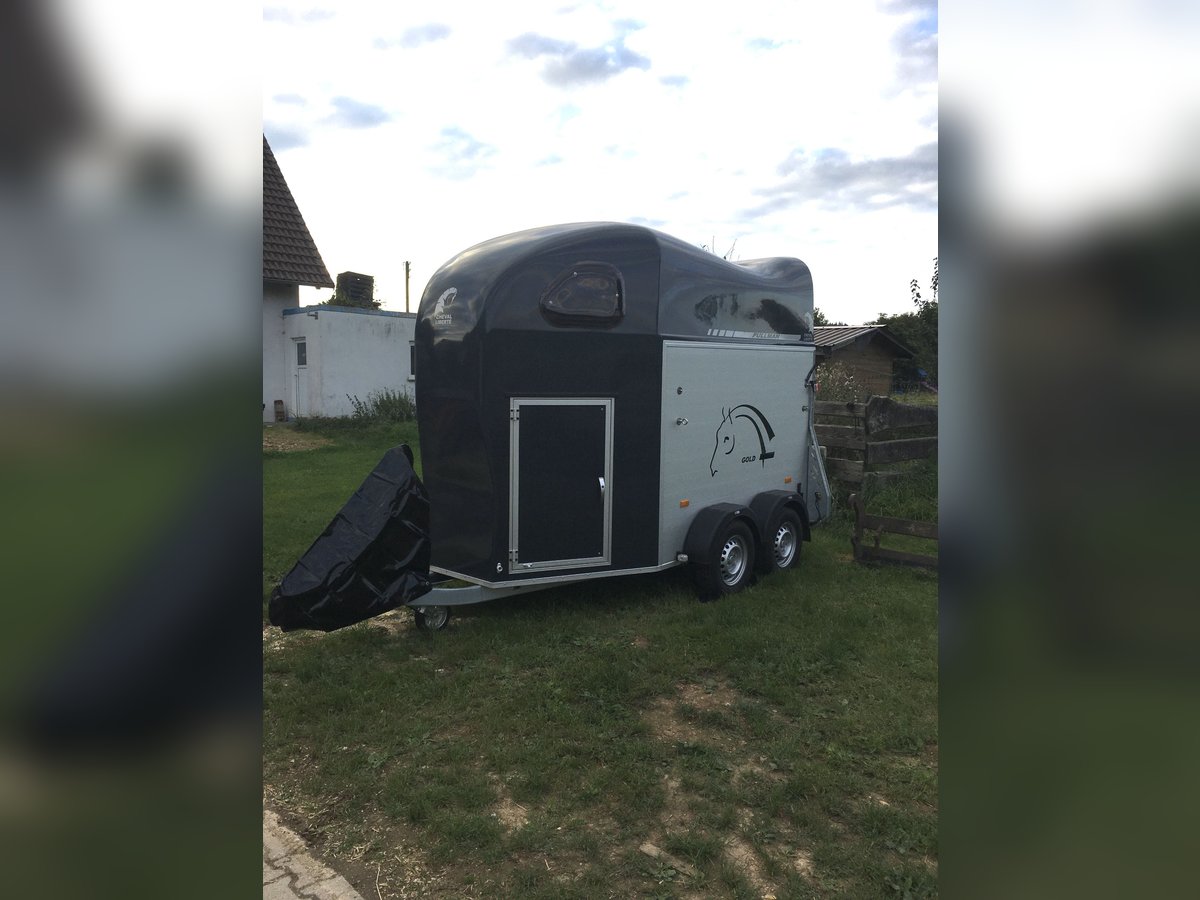 Angeboten wird ein 2er Pferdeanhänger der Marke Cheval Liberté. Der Anhänger wurde wenig genutzt und ist in einem guten Zustand. Ausstattung: •Aluboden mit Gummimatte •höhenverstellbare Boxenstangen, davon 2 Polsterrollen •Sattelkammer mit zwei Sattelhaltern und Trensenhaltern • Fenster • Automatikrollo • Trittschutz seitlich • Seitenpolster • Schwenkbare Rampe für komfortables Be- und Entladen • Pullman-Fahrwerk für besonders ruhiges und pferdefreundliches Fahrverhalten • Reserverad Daten: • Erstzulassung: 2020 • Nächster TUV/HU: 06/2026 auf Wunsch neu • zulässiges Gesamtgewicht: 2000kg (Leermasse 750kg) • Zulassung 100km/h