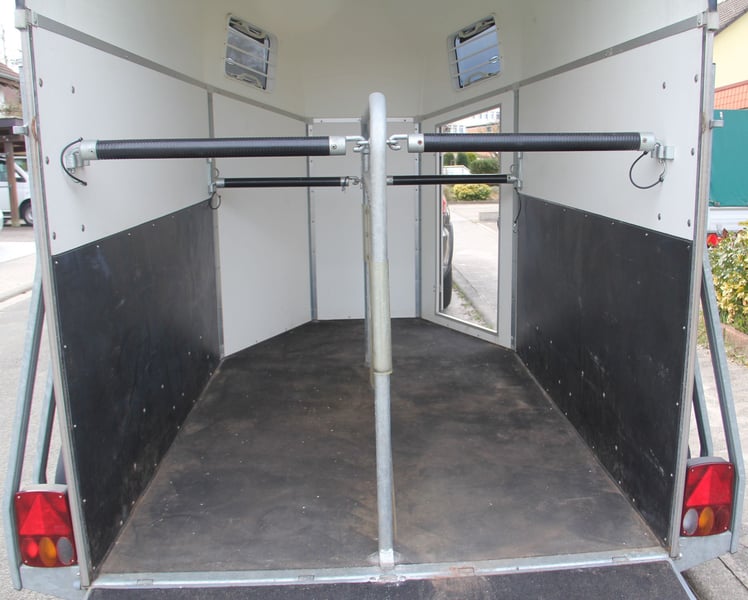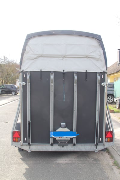 2-Pferde-Anhänger von Böckmann zu verkaufen, Modell "Duo Esprit silver + black". Erstzulassung 10.08.2023, war 6 Monate beim Händler als Mietanhänger im Einsatz, nach dem Kauf (17.06.2024) bei uns nur für den Umzug benutzt (keine Pferde, nur Umzugskartons), gebremst, Radstoßdämpfer, Aluboden, Trittschutz, 8-fach bereift (WR und SR), TÜV 06/2026, auf Wunsch neu. Absolut neuwertiger Zustand. VB: 6600,-€