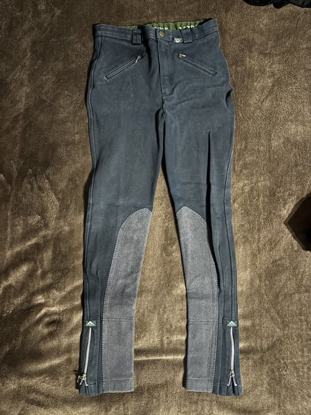 Sprzedam używane siwe bryczesy w rozmiarze 164 cm Są w bardzo dobrym stanie, używane kilka razy