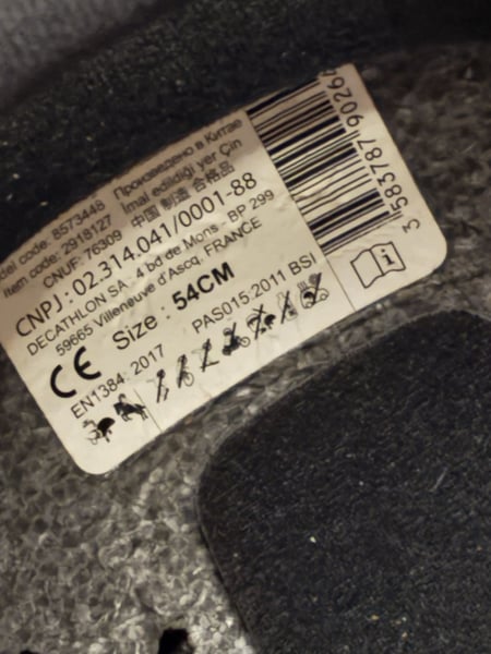brak wad i uszkodzeń solidnie wykonany, nie jest to byle co, co pęka przy pierwszym upadku kask pokryty zamszem wewnątrz materiał można wyciągać i prać obecnie kask jest zdezynfekowany i wyprany, gotowy do użytku Kupiony w Decathlon za 170zl