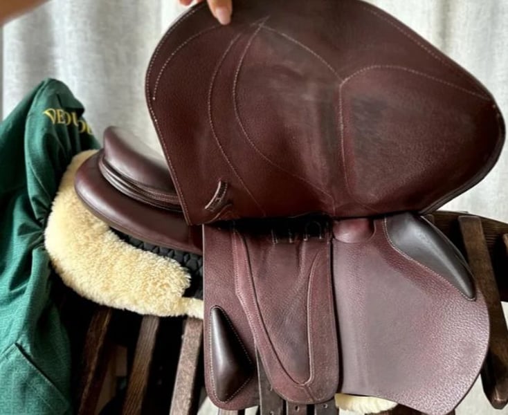 Dostępne do przymiarek zjawiskowe, brązowe Devoucoux Biarritz Lab w rozmiarze 17,5”. Siodło zostało wyprodukowane w 2020r. Tybinka 2AA, średni rozstaw łęku. Panele miękkie, rozkładające równomiernie ciężar jeźdźca dające koniowi wiele komfortu. Wykończenie premium w bardzo przyczepnej skorze cielęcej. Siodło z wygodnym siedziskiem, czyste i zadbane. Posiada niewielkie, naturalne ślady użytkowania. Kupione u polskiego dystrybutora. Warszawa/wysylka/przymiarka Zapraszamy do zapoznania się z całą ofertą na facebooku: Selles d'occasion Available for fitting: stunning brown Devoucoux Biarritz Lab in size 17.5". The saddle was manufactured in 2020. 2AA tree, medium gullet width. Soft panels that distribute the rider's weight evenly, providing the horse with a high level of comfort. Premium finish in highly grippy calfskin. The saddle has a comfortable seat and is clean and well-maintained. It has minor, natural signs of use. Purchased from a Polish distributor. Warsaw/shipping/fitting European shipping Check out our entire offer on Facebook: Selles d'occasion