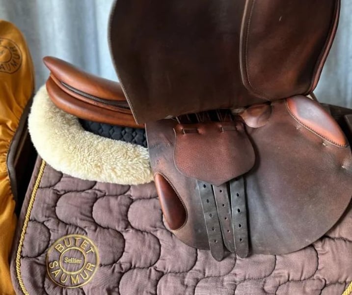 SELLES D'OCCASION Dostępne do przymiarek siodło Butet Saumur. Rozmiar siedziska 18" Standardowy rozmiar łęku. Siedzisko o płaskim profilu, bardzo wygodne dla jeźdźca. Skóra bardzo miękka i elastyczna, świetnej jakości :) Siodło z 2017r. w bardzo dobrym stanie, z niewielkimi śladami użytkowania. Sprzedaż z oryginalnym pokrowcem. Warszawa/ wysyłka/ przymiarka Zapraszamy do zapoznania się z całą ofertą na facebooku: Selles d'occasion :) SELLES D'OCCASION Butet Saumur saddle available for fitting. Seat size 18". Standard tree size. Flat profile seat, very comfortable for the rider. Very soft and supple leather, excellent quality :) Saddle from 2017 in very good condition, with minor signs of use. Sold with original cover. Warsaw/ shipping/ fitting European shipping Check out our entire offer on Facebook: Selles d'occasion :)