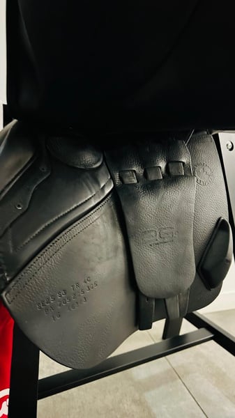 CWD to ekskluzywna francuska marka specjalizujaca sie w siodłach do skoków i ujezdzenia o wysokich osiagach. CWD Dynamick SE25 2GS to luksusowe siodło skokowe z podwójnymi tybinkami. Terlica Dynamick SE25 posiada karbonowo-kevlarowy szkielet. * CWD: Producent * model 2Gs SE25 S 3 TR4 C * PA 705 205 305 * S: Oznacza typ siodła - w tym przypadku, S Siodeł skokowych zazwyczaj mają płytsze siedzisko, co ułatwia jeźdźcowi wykonanie skoku. * 3TR: Oznacza technologię wyściółki siodła, w tym przypadku jest to 3D Fit Technology. * 4C: Określa długość i kształt tybinki (panelu bocznego siodła). * 4: Wskazuje na standardowy rozmiar siedziska 18 ( 17,5 ) w * C: Określa długość tybinki, która jest lekko wysunięta do przodu, dzięki czemu pozwala na zapięcie kolana w lepszej pozycji podczas skoku. * Siodło kolor czarny * Bardzo dobry stan , regularnie czyszczone i pastowane produktami marki CWD + oryginalny pokrowiec . * Możliwa wysyłka do przymiarki max 3 dni ( opłata w obie strony po stronie kupującego przesyłka ubezpieczona ) + wartość całkowita siodła . * Siodło sprzedaje bo jest za małe już na mojego konia . * Cena do negocjacji przy szybkiej decyzji . * Cena 11 ,500 zł ( plus koszty wysyłki ) * Cena nowego 24,000 zł