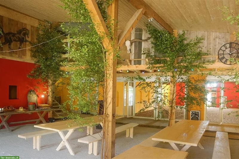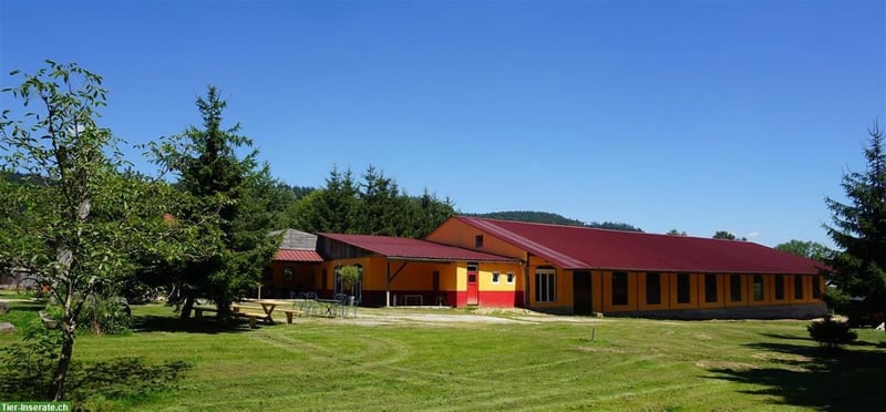 Dieses Reitanwesen in den Vogesen (Elsass) verbindet grosszügige Weideflächen, eine moderne Reithalle, Gästeunterkünfte und Naturidylle. Es kann als Gestüt, Seminar- oder Ferienbetrieb genutzt werden und bietet sich ebenso als privates Domizil an. Damit eröffnet die Immobilie vielfältige Perspektiven – von der gewerblichen bis zur privaten Nutzung – und schafft Raum für individuelle Lebens- und Wohnkonzepte. Grundstück & Flächen • 5.052 m² Grundstück (Terrain Loisir) • ca. 4 ha Weidefläche mit eigenem Bachlauf & massivem Weideunterstand • Pachtoption: zusätzliche 6,5 ha Weide für ca. 500 €/Jahr • ruhige Lage, traumhafte Reitwege direkt ab Hof Gebäude & Ausstattung • Reithalle 40 × 17 m (2011), isoliert, mit großem Seminar-/Aufenthaltsraum (180m²), Sanitär, Schlafmöglichkeiten, Blick in die Halle • Gäste-/Wohnhaus (ca. 350 m², 2005) mit Aufenthaltsräumen, Küche, Kaminzimmer, Bar, Sauna, Sanitär und 5 Schlafzimmern • Blockhaus (60 m², 2024 neu erbaut) mit Naturbaustoffen (Korkisolierung), Pelletheizung; ausgestattet mit Küche, Schlafzimmer, Bad, Wohnbereich und Nebenraum • Pferdestall mit 3–4 Boxen + Offenstall/Unterstand • Voll erschlossen: Strom, Wasser, Kanalisation • Heizsystem: Pelletheizung Lage • 10 km nach Saint-Dié-des-Vosges • 80 km nach Straßburg • 110 km nach Freiburg • 120 km nach Basel • 100 km nach Offenburg Das Anwesen liegt in Étival-Clairefontaine (Vosges, Elsass), einer charmanten Gemeinde mit guter Grundversorgung: Bäckereien, Geschäfte, Apotheke und Bahnhof (TER Anschluss) sind direkt im Ort vorhanden. Grundschule und Kindergartenplätze stehen ebenfalls zur Verfügung. Weiterführende Schulen finden sich in Saint-Dié-des-Vosges. Die Region bietet eine hohe Lebensqualität mit intakter Natur und traumhaften Reitwegen ab Hof – kombiniert mit solider Infrastruktur für den täglichen Bedarf. Besonderheiten • Hochwertige Wohn- und Ferienregion mit grossem Entwicklungspotenzial • Kombination aus Reitanlage, Naturidylle, Ferienbetrieb oder privatem Anwesen. • Flexible Nutzung: Gestüt, Seminar-/Ferienbetrieb oder privates Refugium • Nebenkosten: Grundsteuer ca. 600 €/Jahr Kaufpreis & Konditionen Kaufpreis: 515.000 € Nebenkosten: ca. 7–9 % (Notar, Steuern, Eintragung in Frankreich) Provision: 3 % zzgl. MwSt., fällig bei notarieller Beurkundung Besichtigung & Exposé Dieses Objekt wird exklusiv über FUNKEN Reitsportimmobilien angeboten. Gerne senden wir Ihnen ein ausführliches Exposé zu und vereinbaren einen persönlichen Besichtigungstermin.