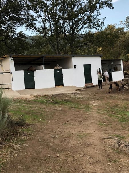 Samenvoeging van 4 percelen met een totaaloppervlak van 212.131 m². Eerste perceel - Landbouwperceel met een totale oppervlakte van 143.611,02 m², verdeeld in bosgrond, weilanden, bevloeiingsland en droogtebomen. Hier bevinden zich 146 vijgenbomen. Op dit perceel staat een vrijstaande woning van 479 m², evenals een industrieel gebruiksgebouw van 412 m². Tweede perceel - Landbouwperceel van ongeveer 38.500 m², bestaande uit subpercelen met olijfgaarden van droogte en bosgrond. Derde perceel - Landbouwperceel van ongeveer 2.724 m² met bosgrond. Vierde perceel - Landbouwperceel van ongeveer 27.236 m², bestaande uit subpercelen met bosgrond, weiden en droogteolijfgaarden. Op het terrein bevinden zich een aanzienlijk aantal eiken, enkele steeneiken en dennenbomen. Installaties, gebouwen, uitrusting en andere niet vermeld in de eigendomsaktes: Stallen, twee boxen, een hoefstal, een voeder- en graansilo. Een grote stal die tevens als opslagruimte kan dienen. Zandbaan voor het longeren, een paddock voor loslopende paarden, een grote cirkelbaan voor training. Een hooischuur gebouwd met de lokale rotsen (lanchar). Een grote houtopslag. Op het perceel bevindt zich een bijzondere constructie met een bakstenen broodoven, waarvan de leeftijd onbekend is, maar in goede staat verkeert, hoewel het dak moet worden onderhouden. Deze constructie dient te worden behouden. Op het nieuwe olijfperceel staat nog een extra gebouw naast een oude vijgendroogplaats. Er is een waterreservoir met een capaciteit van 1.400.000 liter, waarvan de vulling wordt geregeld door de watergeefvereniging. Het perceel heeft minstens één voorjaarsirrigatie. Pompinstallaties: drukpompen, een boorputpomp voor de beregening, een pomp voor de druk in het huis, voor het vullen van de huishoudtank, voor de dieseltank, voor het vullen van het zwembad en de zuiveringsinstallatie. Elektrische installatie, de hoogspanningslijn en de transformator zijn eigendom van het perceel. Een gasketel voor centrale verwarming. Boorputten en opslagtanks: twee boorputten, een betonnen tank van 40.000 liter voor waterbeheer, een ondergrondse dieseltank van 5.000 liter, een watertank van 5.000 liter voor huishoudelijk gebruik. Het perceel heeft een vergunning voor een Paardencentrum. Uit eigen wil is het perceel uitgesloten van het jachtgebied waar het deel van uitmaakte. Het perceel beschikt over een zwembad, tennisbaan en een houtopslag bij het huis. Eigenschappen van het onroerend goed: Rijk aan water Prachtige uitzichten Verwarming Paardenstallen Voorkeurrijke en rustige natuurlijke omgeving Zwembad Woning