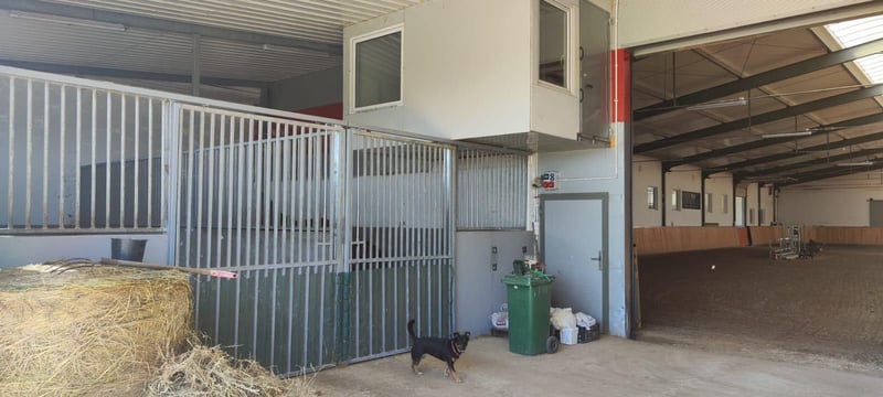 Indoor arena (built 2020): 48m x 23m, equipped with a new quartz floor (2023) with automatic irrigation from underneath