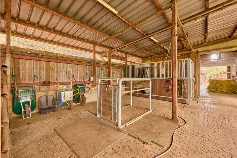 Bitte füllen Sie das nachfolgende Kontaktformular vollständig aus bevor Sie uns telefonisch kontaktieren. Vielen Dank für Ihr Verständnis! Pferdeimmobilie im Saarland (Wadern) mit großem Wohnhaus, moderner Reithalle und direktem Ausreitgelände! Objektbeschreibung: Dieses Gestüt in Wadern-Gehweiler im Nordsaarland überzeugt durch seine ruhige Alleinlage, eine durchdachte Hofstruktur und großzügige Flächen von ca. 40.327 m² im Eigentum zzgl. ca. 28.605 m² Pachtland. Teile der Flächen liegen im Naturschutzgebiet Wadrilltal und unterstreichen die besondere landschaftliche Qualität. Das Wohnhaus (Baujahr 1968–1973) bietet ca. 193 m² Wohnfläche und wurde in solider Massivbauweise errichtet. Es verfügt über eine Einbauküche mit Geräten von Miele und Liebherr, doppelt verglaste Fenster sowie eine Mischung aus Fliesen-, Parkett- und Teppichböden. In den letzten Jahren wurden u. a. die Fassade (2007) sowie 2025 eine moderne Ölbrennwertheizung inklusive Warmwasser, Abgasleitung und Kamin erneuert. Ein Wintergarten mit Blick auf Stall und Weiden, eine Terrasse, Stellplätze und eine Garage ergänzen das Wohnangebot. Die städtische Versorgung mit Wasser, Strom und Glasfaseranschluss ist gewährleistet. Zusätzlich gibt es einen Brunnen sowie eine Kleinkläranlage. Der Pferdebereich ist funktional und gut ausgestattet: Ein Stallgebäude (1996) mit ca. 152 m² bietet 10 großzügige Boxen (3 x 4 m) mit beheizbarem Tränkensystem. Ergänzt wird dieser durch eine Lagerhalle mit überdachtem Mistplatz (2003), Offenstallplätze, Putzplätze und Untersuchungsstand. Die Reithalle (Baujahr 2007) mit einer Reitfläche von ca. 20 x 40 m, hochwertigem Boden (Kirchhellner Sand), Beleuchtung und kleiner Tribüne bietet optimale Trainingsbedingungen. Zusätzlich steht eine Longierhalle (Ø 13 m, Baujahr 2002) zur Verfügung. Koppeln sind direkt vom Hof aus erreichbar! Abgerundet wird das Angebot durch gepflasterte Hofflächen, Maschinenunterstände sowie umfangreiche Lagerkapazitäten für Futter. Eine Bauvoranfrage für einen weiteren Reitplatz mit Ovalbahn liegt vor. Insgesamt bietet die Anlage ideale Voraussetzungen für Pferdehaltung, Training oder Zucht in naturnaher und gleichzeitig gut angebundener Lage. Ausstattung: Wohnhaus: - Baujahr: 1968 – 1973 - Wohnfläche: ca. 193 m², 1 Wohneinheit - Einbauküche aus 1996 mit Geräten von Miele und Liebherr - Heizung: Heizöl aus November 2025 - Sanierungen: Leitungssysteme aus 1996, Einbau einer Ölbrennwertheizung inkl. Warmwasser- RLU in & Einbau einer Abgasleitung für Überdruck in einem bestehenden Schacht im Jahr 2025, Fassade in 2007 erneuert, Kaminofen im Wohnzimmer Fabr. Oranier aus 2025 - Massivbauweise, nicht unterkellert - Fenster: Doppelverglasung, Holz & Kunststoff (außer Wintergarten im OG) - Wintergarten mit tollem Ausblick zum Stall und den Weiden, genutzt als Büro Versorgung: - Neu verlegte Strom und Glasfaseranschlüsse direkt zum Wohnhaus - Städtische Wasserversorgung: Wasserleitung wurde 2010 neu zum Haus gelegt - Brunnenanlage: für Stall und Brauchwasser Toilette und Waschmaschine, Außenanschlüsse (inkl. Pufferspeicher mit 250 Liter Fassungsvolumen und Tiefbrunnenpumpe, automatische Nachspeisung) - Mechanisch-biologische Kleinkläranlage für 4 Personen, Abnahme erfolgte 2004 Pferdestall: - Baujahr Gebäude: 1996 - 10 Pferdeboxen - Maße 3 x 4 Meter mit Drehtüren und geschwungener Ausführung, Trennwände sind flexibel zu entfernen, um Doppelboxen (Abfohlboxen) zu errichten - Tränkenheizung: Thermostat mit Kreislaufsystem Fabrikat Suevia, Selbsttränken (im gesamten Stall und auf den Paddocks) - Dach: Ziegeleindeckung und Lüftungssteine, First-Lichtband - Massivbauweise mit gemauerten Wänden, Innen- und Außenputz Angrenzende Lagerhalle mit Mistplatz: - Anbau der landwirtschaftlichen Lagerhalle mit überdachtem Mistplatz im Jahr 2003 an den bestehenden Pferdestall - Mistplatz mit 24 m² - 6 Offenstallplätze im Außenstall - Putzplätze & Untersuchungsstand vorhanden - Dach: Stahlkonstruktion mit Trapezblech Reithalle: - Baujahr: 2007, Baugenehmigung 2003 / 2004 (Maße 27,5 x 45 Meter) - Anschleppung für Maschinen, 2 Laufställe (3 x 5 Meter) - Reitfläche: 20 x 40 Meter - Boden: Kirchhellner Sand auf Lava - Beleuchtet - Konstruktion: Holz-Leimbinder - Dach: Trapezblech mit Anti-Tropf Beschaffenheit und Lichtplatten Longierhalle: - Baujahr: 2002 - Durchmesser: 13 Meter - Boden: Split, Wabengittermatten - Holz-Bande & Beleuchtung vorhanden Koppeln: Direkt am Hof zu begehen gelangen Sie auf die Koppelflächen. Weiteres: - Mistplatte am Stallgebäude, überdacht (genehmigt) - Gepflasterte Hofflächen - Maschinenunterstand und Carport am Stall - Futterlagerung an der Reithalle von bis zu 150 Rundballen Lage: Der Ortsteil Gehweiler der Stadt Wadern im Landkreis Merzig-Wadern ist verkehrstechnisch gut an das regionale und überregionale Straßennetz angebunden. Über die nahegelegene Autobahn A1 sowie die Anschlussstellen Braunshausen/Kastel und Nonnweiler ist eine schnelle Verbindung in Richtung Saarbrücken (ca. 60 Autominuten), Trier (35 – 40 Autominuten) und Luxemburg gewährleistet. Der nächste größere Flughafen ist der Flughafen Saarbrücken (SCN), der in etwa 50–60 Minuten mit dem Auto erreichbar ist. Alternativ stehen auch die Flughäfen Luxemburg und Frankfurt-Hahn in gut erreichbarer Distanz zur Verfügung. Der Hof befindet sich in ruhiger, naturnaher Lage im Ortsteil Gehweiler der Stadt Wadern im Hochwaldgebiet. Die Ortschaft Gehweiler liegt in einer Höhenlage von 300 bis ca. 330 m. über N.N. und ist dem Schwarzwälder Hochwald mit Höhen zwischen 600 und knapp 700 Metern vorgelagert. Trotz der idyllischen, ländlichen Umgebung ist die Grundversorgung in kurzer Fahrdistanz sehr gut erreichbar. Im nahegelegenen Stadtgebiet Wadern stehen sämtliche Einrichtungen des täglichen Bedarfs zur Verfügung. Dazu zählen mehrere Supermärkte, Bäckereien sowie vielfältige Einzelhandels- und Dienstlei