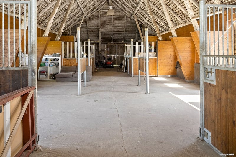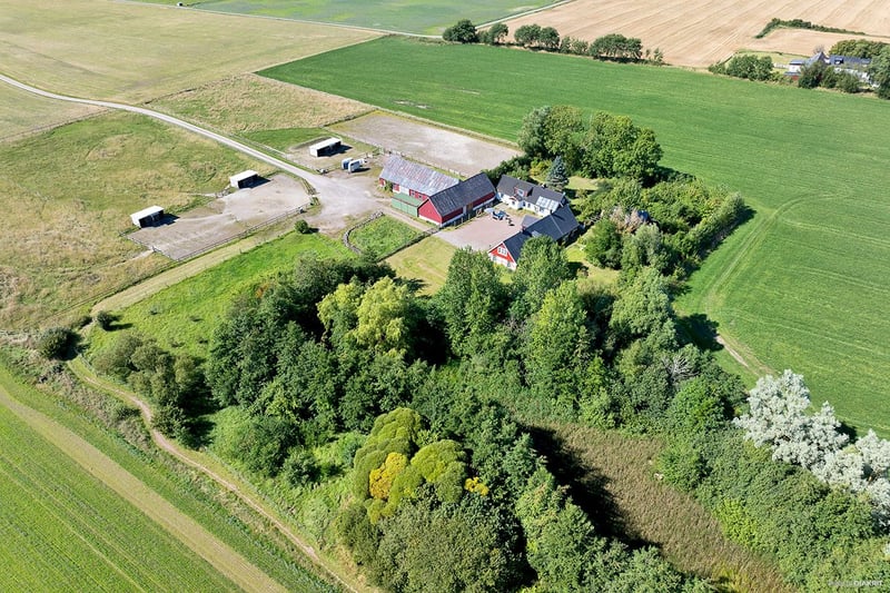 Charming residence with a spacious stable – perfect for entrepreneurship and equestrian life. A Rare Opportunity to Acquire a Complete Equestrian Property! This property offers a unique opportunity to acquire a fully equipped equestrian estate, featuring two residential homes, a modern stable building, a cozy guest cottage, and generous spaces for both humans and animals. With its beautiful farmyard, unique location in scenic surroundings, and thoughtful design, this estate is perfect for those seeking a lifestyle home where both living and equestrian pursuits are central. Not only does this property offer fantastic accommodations and equestrian facilities, but it also presents excellent opportunities for those looking to combine country living with a profitable business venture. With multiple residential buildings and a separate guest cottage, there are great possibilities for a Bed & Breakfast operation. For entrepreneurs, there is also potential to open a shop, farm store, or run a business in equine tourism, events, or workshops – the possibilities are only limited by your imagination. The beautiful garden, nature-based surroundings, and the authentic feel of the property create an experience that attracts both Swedish and international visitors. The estate is located in a popular area that, during the summer months, is a favorite destination, offering easy access to nature reserves, riding trails, the coast, and charming villages with cafés, farm shops, and artist studios. Its strategic location allows visitors to easily reach the estate by car and explore the region's rich offerings of nature and culture. This is truly a place where home, equestrian life, and business opportunities come together in an environment many dream of experiencing. Everyday Services: Despite the countryside setting, everyday services such as grocery stores, florists, veterinary clinics, pizzerias, and libraries are nearby. In summer, the harbor comes to life with restaurants and activities. Vejbystrand - Sea: 3.9 km Hjärnarp (Shops & Services): 9.9 km Torekov: 20 km Båstad: 15 km Helsingborg: 41 km Laholm: 38 km Ängelholm Airport: 12 km Copenhagen (Kastrup): 130 km A Place for Horses and Dogs to Live in Harmony – A Farm Where Every Detail is Designed with Care Welcome to an equestrian estate created to provide both humans and animals with the best of countryside tranquility and equestrian quality of life. Here, you are greeted by a warm and thoughtful environment where every detail in the stable and surroundings has been carefully planned for function, comfort, and enjoyment – catering to all horse breeds and disciplines. The generous and spacious stable features six bright stalls, ranging in size from 9.5 sqm to 13.5 sqm, all with impressive ceiling heights extending to the roof ridge. There is ample room for both movement and rest, providing the horses with a safe and calm space to reside in. The grooming areas are well-equipped with tying places, a farrier station, and a separate grooming stall – all designed to make daily care of the horses as simple and safe as possible. The stable is connected to a large barn offering generous storage space for feed, hay, and silage – easily accessible and functional for efficient stable management. Practical gates lead directly to the courtyard and further on to the pastures and paddock, making the daily routine smooth and time-efficient. A separate shed houses a well-equipped tack room with water, storage, and a changing room. For horses that thrive in freedom, there are two free-range paddocks with attached loose housing, where the animals can roam freely and enjoy the rhythm of nature. The riding opportunities are exceptional: a private trail meanders through the own woodland and out into open fields, with plenty of gravel roads in the area for varied rides. For those wishing to take a longer ride, the sea is just about 4 kilometers away – perfect for a relaxing ride with a refreshing sea breeze in the air. For those with dogs or breeding activities, a large and spacious dog run is available, with direct access to the stable via a practical hatch – a smart solution that simplifies daily routines and creates a safe and flexible environment for your four-legged friends. This is a farm for those who want to provide their horses with a home filled with care, peace, and freedom of movement – where both horses, dogs, and dreams have room to grow.