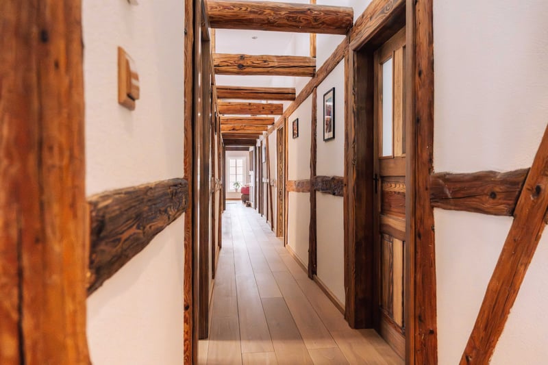 Nieuw gerenoveerd, beschermd monumentaal driezijdig boerderijcomplex in Canitz bij Riesa, met eigen rijbaan en uiterst moderne voorzieningen! Uniek landgoed met geschiedenis en innovatieve techniek. Dit bijzondere driezijdige erf in Canitz bij Riesa combineert historische bouwmaterialen uit circa 1790 met modern wooncomfort en hedendaagse technologie. In de afgelopen jaren is hier een indrukwekkend landgoed ontstaan, dat beschikt over luxe woonruimtes, een moderne rijbaan met stal en andere bedrijfsruimtes, een ruime schuur en extra grote terreinen voor diverse woon- of zakelijke doeleinden. Daarnaast is het eigendom bijna volledig zelfvoorzienend dankzij twee zonnepaneleninstallaties met batterijsystemen en eigen wallboxen, twee bronnen voor waterwinning op het terrein en een hybride verwarmingssysteem (pellet/hout) met buffertank en zonne-energie. Het gehele erf is tussen 2018 en 2022 beschermd gerenoveerd volgens monumentenrichtlijnen, inclusief de buitenaanleg met stal en rijbak. Zo is hier de perfecte combinatie van comfortabel wonen en het realiseren van een paardenliefhebbersdroom gerealiseerd, wat heeft geleid tot een uitzonderlijk object voor liefhebbers. Perceel – 14.860 m² Het ruime perceel heeft een totale oppervlakte van circa 14.860 m². Het woonhuis (ca. 1790) beslaat ongeveer 260 m² woonoppervlak, het middenstuk (ca. 1850) bevat een circa 120 m² grote zelfstandige woonunit, werkplaats, kalkovens met paardenstal (3-4 boxen) en andere bedrijfs- en opslagruimtes, plus een extra uitbreidingsreserve op de zolder. De derde vleugel van het erf bestaat uit de ruime schuur (ca. 1890) met circa 400 m² vloeroppervlak. Twee grote carports met respectievelijk drie en twee parkeerplaatsen, voorzien van wallboxen, maken het indrukwekkende erf compleet. Via een kleine brug bereikt men het terrein en via een videogestuurd poortensysteem komt men op de uitgestrekte, met natuursteen geplaveide binnenplaats. Achter het markante erf strekt het grote perceel zich uit, inclusief een natuurvijver (diameter 30 m, met vijverfolie) met steiger, buitenzitje met barbecue en een massief paviljoen (bouwjaar 2015). De achterliggende gebieden zijn de afgelopen jaren grondig heringericht: in 2022/23 is een volledig overdekte, vorstvrije all-weather paddock (7 x 14 m) aangelegd, aansluitend op een circa 600 m² grote uitloop met Ridcon-platen. Daarnaast is er een eigen rijbak van 70 x 30 m, omringd door meerdere weilanden. Deze zone is voorzien van irrigatiesystemen en volledig omheind. Twee bronnen zorgen voor een onafhankelijke watervoorziening, beheerd via automatische sproeisystemen. Energie & techniek – zelfvoorzienend en slim Het woonhuis is voorzien van binnenisolatie en een op maat ontworpen verwarmingssysteem, met energieklasse B (66,46 kWh). Het landgoed is energetisch zelfvoorzienend en uitgerust met de nieuwste technologie: • Twee zonnepaneleninstallaties (elk 10 kWp) en twee batterijsystemen (totaal 30 kWh) • Fröling S4 Turbo hout/pellet-ketel met 2.850 liter buffertank • Zonne-thermie voor warm water en een 1.000 liter friswaterbuffer • 5,5 kW noodstroomaggregaat voor zelfstandige back-up • Slimme thermostaat- en verwarmingsregeling voor optimale energiebesparing • WLAN-access points over het hele terrein • Starlink highspeed internet • Volledige videobewaking (kantelbaar, IR-geschikt) • Op afstand bedienbare irrigatie- en sproeisystemen • Balkenhoofdsverwarming voor de vakwerkstructuur van het woonhuis • Een wallbox voor elektrisch laden Woonhuis ca. 250 m² woonoppervlak • Drievoudig geïsoleerde houten ramen en binnenisolatie van de muren • Diverse historische details behouden, zoals originele tegels uit 1900 in de entree, gedeeltelijk zichtbare metselwerk en bewerkte zichtbalken • Vloerverwarming op de begane grond, traditionele wandverwarming op de bovenverdieping • Ruime en moderne indeling (woonkamer + 6,5 kamers) • Hoogwaardige eikenhouten vloer in de gehele bovenverdieping • Twee houtkachels (woonkamer en woonkeuken) • Drie daglichtbadkamers, inloopkast, wasruimte met bijkeuken • Keuken en badkamers met hoogwaardige apparatuur en componenten • Extra grote hobby-, feest- of sportkamer op de begane grond • Mogelijkheid tot splitsing in 2-3 wooneenheden • Begane grond is uitgegraven en opnieuw opgebouwd, het huis is drooggelegd Middendeel met zelfstandige woonunit en bedrijfsruimtes, circa 120 m² • 3-kamerappartement op de eerste verdieping met ruime indeling en eigen ingang • Open woon-/eetkamer met schuifdeuren • Badkamer met daglicht en bijkeuken • Extra opslagruimte mogelijk in de zolder Stallen ca. 150 m² plus circa 250 m² opslagruimte • 3-4 grote paardenboxen • Verwarmde waterleidingen en buitenwasplaats • Opslagzolder en werkplaats met historische gewelven ca. 150 m² • Extra ruimte als grote garage te gebruiken • Uitbreidingsreserve op zolder en in de bovenverdieping circa 100 m² Schuur ca. 400 m² vloeroppervlak • Vier grote toegangshekken voor in- en doorrit • Extra opslagruimte mogelijk door het plaatsen van tussenwanden • Kleine kelder, opslagruimtes en overdekte buitenruimtes • Kraaninstallatie, transportsysteem Paardenfaciliteiten • Rijbak (30x50 m) met irrigatie • Overdekte stal (7x14 m) met verwarmde drinkbakken • 600 m² uitloop met vaste omheining, vier weilanden en stevige afrastering • Paardvriendelijke boomgaard Vijvercomplex • Natuurvijver met vijverfolie • Twee toevoerleidingen en een pompinstallatie voor beekwater • Steiger met terrassen en zitplaatsen • Massief paviljoen met mediapunten (mogelijk als gastenverblijf) • Vijver met visbestand, bijvoorbeeld grasskarper Aanvullende inventaris • Houtvoorraad voor 2-3 jaar • Elektrische wiellader, zitmaaier, aanhanger • Diverse machines en accessoires Dit aanbod betreft een zakelijk object. Bij aankoop wordt een makelaarscourtage van 3,57% van de koopprijs in rekening gebracht door Planethome.