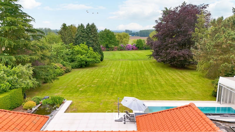In der Provinz Vlaams-Brabant, in Affligem, treffen wir diese mondäne Villa mit Pferdeställen und Grünland auf 1,3 Hektar an. Die charmante und stilvoll eingerichtete Villa ist über den Eingangsbereich zugänglich, der mit einem Gäste-WC ausgestattet ist und Zugang zum großzügigen Wohnbereich bietet, in dem der Essbereich und das Wohnzimmer ein harmonisches Gesamtbild ergeben. Im Mittelpunkt steht die moderne, elegante Küche in weißem Hochglanz, die mit allen Annehmlichkeiten ausgestattet und mit einer versteckten Durchgangstür versehen ist. Diese schicke Küche mit minimalistischer Ausstrahlung und hohem Küchenkomfort zeichnet sich durch klare Linien, glänzende Oberflächen und ein grifflose Design aus. Anschließend finden Sie einen multifunktionalen Wohnraum, der derzeit als Showroom dient, den Sie jedoch nach Ihren Bedürfnissen gestalten können. Denken Sie an einen Wohnbereich, der im Zeichen von Entspannung und Luxus steht, Wellness ... Fitness ... Der Bürobereich ist als Home Office der perfekte Arbeitsplatz im Haus. Verfeinerte Luxusdetails spielen eine prominente Rolle im Interieur dieser Immobilie. Durch die Features dieses Smart Home wird der Alltag ein wenig einfacher. Hausautomation, Videoüberwachung, Alarmsystem, Klimaanlage, Wärmepumpe sind nur einige der vielen Vorzüge dieses Eigentums. Die großen Fenster sorgen für viel Tageslicht in den Wohnräumen. Ebenfalls im Erdgeschoss finden wir ein Master-Schlafzimmer mit einer großzügigen Ankleide und einem Badezimmer en suite. Ein wunderschönes, stilvolles Badezimmer ausgestattet mit einem Doppelwaschbecken, einer Badewanne, einer Infrarot-Dusche und einem WC. Eine ausgezeichnete Kombination aus modernem Komfort und ansprechendem Design! Im ersten Stock finden wir 2 vollwertige Schlafzimmer, jedes mit eigenem Badezimmer. Diese Badezimmer sind beide mit einem Waschbecken, einer Dusche und einem WC ausgestattet. Darüber hinaus gibt es auf dieser Etage einen zusätzlichen Wohnraum, den Sie nach Ihren Wünschen gestalten können. Eventuell zusätzliche Schlafzimmer oder Sie können hier zusätzlichen Wohnraum schaffen. Zahlreiche Möglichkeiten. Das Erdgeschoss verfügt über mehrere Garagen für die Unterbringung mehrerer Fahrzeuge, ebenfalls eine Ladestation für Elektroautos. Nachts aufladen und am nächsten Tag mit voller Batterie wieder auf die Straße. Anschließend finden Sie den Abstellraum alias Waschraum mit den notwendigen Anschlüssen. Wenn wir von diesem Raum eine Treppe höher gehen, gelangen Sie auf einen Dachboden, der Ihnen erneut ausreichend Platz für die Lagerung Ihrer Dinge bietet. Außerdem gibt es einen Keller als Abstellraum. Im Freien, angrenzend an die Terrasse, befindet sich ein wunderschöner Außenbereich mit Pool und herrlichem Blick auf das dahinterliegende Grünland. Die Magie des Lebens im Freien kommt hier voll zur Geltung. Im überdachten Pool können Sie sich entspannen und das ganze Jahr über schwimmen, ohne dass das Wetter ein Hindernis darstellt. Die Außensauna bringt Ihr Home Wellness auf die nächste Stufe! Außerdem finden wir ein Holzstallgebäude, das natürliche Material fügt sich in die Umgebung ein und hat eine warme, ländliche Ausstrahlung. Die 5 geräumigen Boxen sind mit einem Außenfenster ausgestattet und blicken auf die angrenzende Paddock. Die Paddock und die Wiesen bieten den Pferden ihren täglichen Auslauf. Das Ganze ist mit einem Holzzaun abgeschlossen. Als Genussmensch und Tierliebhaber ist es ein Nach-Hause-Kommen, denn Ruhe, Privatsphäre und eine familiäre Atmosphäre sind die absoluten Vorzüge dieses wunderschönen Eigentums. Möchten Sie gerne noch ein wenig erweitern? Das ist möglich! Möglichkeit zum Erwerb eines angrenzenden Baugrundstücks von 2.336 m². Möchten Sie mehr Informationen zu diesem wunderschönen Eigentum?! Zögern Sie nicht, uns zu kontaktieren.