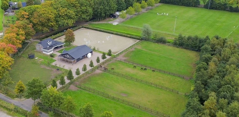 Prachtlocatie voor paardengeluk! Ontdek dit unieke object dat volop mogelijkheden biedt voor het hobbymatig en (semi)professioneel houden van paarden aan huis. Naast de ruim opgezette, levensloopbestendige, vrijstaande woning is er een bijzondere buitenfavoriet: een vrijstaande paardenstal, die met oog voor detail en kwaliteit is afgewerkt. Hoogwaardige materialen zoals RVS accenten en gebakken klinkers geven het geheel een exclusieve uitstraling. De stal beschikt over 6 paardenboxen met een functionele wasplaats. Verder is het perceel uitgerust met een ruime buitenpiste voorzien van een eb/vloedbodem en zorgvuldig aangelegde paddocks – perfect voor de serieuze paardenliefhebber! Neem snel contact op voor een bezichtiging en ervaar zelf de unieke sfeer en alle mogelijkheden die dit pand te bieden heeft! WOONHUIS Begane grond De ruime entreehal biedt toegang tot de woonkamer, slaapkamer, toiletruimte en de meterkast. De royale woonkamer is voorzien van een tegelvloer, stucwerk wanden en een stucwerk plafond. De ruimte is verdeeld in een zitgedeelte en een eetgedeelte. De royale woonkamer is voorzien van een tegelvloer, stucwerk wanden en een stucwerk plafond. De ruimte is verdeeld in een zitgedeelte en een eetgedeelte. De knusse zithoek, met een sfeervolle gashaard, nodigt uit tot ontspannen gezellige avonden. Het eetgedeelte profiteert van een overvloed aan natuurlijk licht en een fraai uitzicht op de paardenstal. In het midden is de keuken gesitueerd. De keuken met spoel/kookeiland en een apparatenwand is uitgerust met een vaatwasser, combi-oven/magnetron, diepvries en een koelkast. De keuken beschikt over veel opbergruimte. De riante slaapkamer met badkamer en-suite is voorzien van een fraaie PVC-vloer in visgraatmotief met strakke stucwerk wanden en een stucwerk plafond voorzien van inbouwverlichting. Door de royale afmeting biedt de ruimte u volop mogelijkheden. Dankzij de vaste kasten is er voldoende opbergruimte aanwezig – een perfecte oplossing voor al uw kleding en accessoires. Er is tevens een airco aanwezig. Vanuit de slaapkamer is er toegang tot de badkamer en-suite. Deze sfeervolle badkamer is geheel betegeld en verder uitgerust met een zeer ruime inloopdouche, een dubbele wastafel met meubel en een zwevend toilet. De ruime inloopdouche biedt met zijn sunshower en infraroodfunctie een ware wellnessbeleving, ideaal om na een lange dag tot rust te komen. Kortom een heerlijke ruimte om te ontspannen. De wasruimte is eveneens bereikbaar vanuit de slaapkamer. Deze praktische ruimte is ingericht met op maat gemaakte kasten, inclusief aansluitingen voor wasapparatuur en mechanische afzuiging, biedt deze ruimte een efficiënte en overzichtelijke oplossing – met als extra voordeel dat de apparatuur op hoogte is geplaatst. Een achterportaal met berging en vaste kasten biedt toegang tot de overkapping en het erf. Ook hier zijn aansluitingen voor de wasapparatuur aanwezig. 1e verdieping De overloop biedt toegang tot 2 ruime slaapkamers en een badkamer. De slaapkamers zijn beide voorzien van een laminaatvloer, stucwerk wanden en een schrootjes plafond. Onder de dakschuinte zijn schuifkasten gecreëerd, welke zorgen voor veel opbergruimte. De badkamer is geheel betegeld en uitgerust met een inloopdouche, een wastafel met meubel en een zwevend toilet. Een dakkapel zorgt hier voor natuurlijke ventilatie en lichtinval. Een luik biedt toegang tot de bergzolder waar de unit voor de airco is gesitueerd. TUIN Ontdek een oase van rust en privacy: de gehele woning wordt omgeven door een buitenruimte ingericht met gazon en bestrating van gebakken klinkers. Het royale overdekte terras aan de achtergevel van de woning vormt de ideale plek om na een lange dag te ontspannen, te genieten van een heerlijk kopje koffie of gezellige momenten met familie en vrienden. Hier ervaart u niet alleen een absolute aangename rust en privacy, maar ook een fraai uitzicht dat de landelijke sfeer compleet maakt. PAARDENSTAL Ontdek deze prachtige, vrijstaande paardenstal; een waar paradijs voor liefhebbers van de paardensport. De stal is gebouwd in een traditionele stijl met metselwerk gevels, waarvan enkele delen zijn gepotdekseld en is afgewerkt met een dak voorzien van sandwichpanelen in een authentiek dakpanmotief. Het geheel wordt afgesloten door openslaande deuren. Het gangpad is uitgerust met gebakken klinkers. De zes paardenboxen, elk voorzien van een rubberen vloer en deels bezette en deels rubberen wanden. De bijzondere RVS draaideuren met bamboe afwerking en het aparte buitenluik per box, dragen bij aan de moderne uitstraling en functionaliteit. De zadelkamer is afgewerkt met stucwerk wanden, een houten balkenplafond en een betonnen vloer. Deze ruimte is uitgerust met aansluitingen voor de wasapparatuur, een beregeningspomp, een groepenkast en de stroomvoorziening voor het weiland. Voor extra comfort beschikt de stal over een toiletruimte, welke is ingericht met een zwevend toilet, een urinoir en een wastafel. De wasplaats voorzien van een rubberen vloer en wanden, is uitgerust met warm- en koudwatervoorziening, zodat uw paarden altijd kunnen genieten van optimale verzorging. Tot slot biedt de aparte opslagruimte, voorzien van een betonnen vloer, bezette wanden en een geïsoleerd dak, met openslaande deuren en een loopdeur, de perfecte plaats om benodigdheden en materialen veilig op te bergen. Deze paardenstal combineert functionaliteit en comfort met een doordachte indeling en kwaliteitsafwerking – de ideale investering voor serieuze paardenliefhebbers die houden van oog voor detail en uitstekende faciliteiten. Welkom in uw nieuwe ruiterparadijs! OVERIGE FACILITEITEN De buitenpiste heeft een afmeting van ca. 25 mtr. x 50 mtr. en is voorzien van een eb/vloedbodem. Het weiland is verdeeld in 5 paddocks. Deze paddocks zijn uitgerust met automatische drinkbakken. De omheining is van hout, extra hoog. Het erf is afsluitbaar met een automatische poort. BIJZONDERHEDEN – Het geheel is aangesloten op de riole