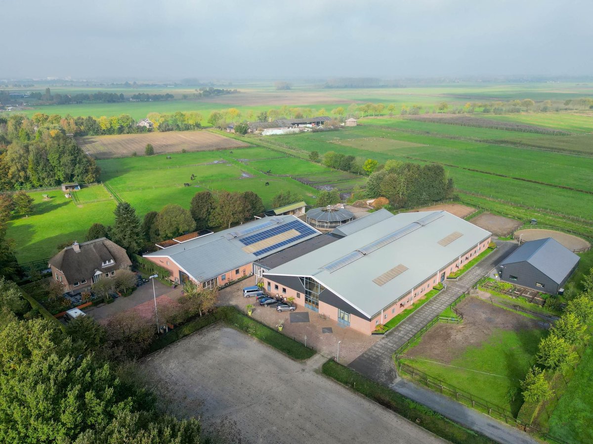 Komplette Reitsportanlage mit Einfamilienhaus, Wohnung, Büro, Reithalle mit Reithalle und insgesamt 31 Pferdeboxen, Außenplatz, überdachtes Laufband, Longierzirkel, mehrere Paddocks, Weide, Lager-/Feldscheune und freistehender Schuppen. All dies befindet sich auf einem großzügigen Grundstück von über 4 Hektar und bietet viele Möglichkeiten für den professionellen Pferdeliebhaber! HAUS Das freistehende Haus verfügt im Erdgeschoss über ein attraktives Wohnzimmer, eine Wohnküche, einen Hauswirtschaftsraum und einen Keller. Im 1. Stock befinden sich 3 großzügige Schlafzimmer und ein geräumiges Bad. Auf der 2. Etage befindet sich ein Dachboden. Der umliegende Garten ist schön angelegt und mit Rasen, Bepflanzung, Bäumen und mehreren Terrassen ausgestattet. Erdgeschoss: Die Eingangshalle ist mit PVC-Bodenbelag im Fischgrätenmuster, teilweise gemauerten/teilweise verputzten Wänden und einer Stuckdecke ausgestattet. Von der Halle aus gelangt man in das Wohnzimmer, in den Zählerschrank und über eine feste Treppe in den ersten Stock. Die Diele hat einen PVC-Boden im Fischgrätenmuster, teilweise gemauerte/teilweise verputzte Wände und eine Stuckdecke. Von der Diele aus gelangt man in das Wohnzimmer, in den Zählerschrank und über eine feste Treppe in den ersten Stock. Die geräumige Wohnküche ist ebenfalls mit dem gleichen PVC-Boden im Fischgrätmuster ausgestattet. Die Wände und die Decke sind verputzt. Die Küche ist U-förmig angelegt und hat eine Abstellinsel. Die Küche ist außerdem mit einem Geschirrspüler, einer Kombimikrowelle, einer Spüle, einem 5-flammigen Gasherd und einem Kühlschrank ausgestattet. Von der Küche aus gibt es einen Zugang zum Keller. Der Keller ist komplett gefliest und mit einem Kuckuck und einem Fenster ausgestattet. Es gibt feste Regale und eine Holztreppe. Eine Luke bietet Zugang zu den Räumen unter dem Haus. Der praktische Hauswirtschaftsraum ist teilweise gefliest und der Boden ist mit einem Fliesenboden mit Fußbodenheizung ausgelegt. Praktische Schiebeschränke bieten Stauraum. Hier befinden sich der Kombikessel der Zentralheizung, die Fußbodenheizung und die Anschlüsse für die Waschmaschine. Vom Hauswirtschaftsraum aus hat man Zugang zum Toilettenraum und zum Hof. Der Toilettenraum ist komplett gefliest und zusätzlich mit einem Handwaschbecken und einer schwimmenden Toilette ausgestattet. 1. Stock: Der großzügige Treppenabsatz bietet Zugang zu 3 geräumigen Schlafzimmern und einem Badezimmer. Das Schlafzimmer I ist mit Teppichboden ausgelegt, hat gespritzte Wände und eine gespritzte Decke. Von diesem Zimmer aus gelangt man über eine feste Treppe auf den Dachboden. Das Zimmer verfügt außerdem über einen praktischen Einbauschrank. Schlafzimmer II ist ebenfalls mit Teppichboden, gespritzten Wänden und einer gespritzten Decke ausgestattet. Feste Schiebeschränke bieten Stauraum. Das geräumige Badezimmer ist komplett gefliest und mit einer Badewanne, einer begehbaren Dusche, einem Waschbecken mit Unterschrank und einem Design-Heizkörper ausgestattet. Der Toilettenraum ist komplett gefliest und mit einer schwimmenden Toilette ausgestattet. Das sehr geräumige Hauptschlafzimmer wurde früher in zwei Schlafzimmer aufgeteilt. Dies ist relativ einfach wieder zu realisieren. Der Raum ist mit Teppichboden, Spachtelputzwänden und einer Spritzdecke ausgestattet. Ein praktischer Kleiderschrank und verschiebbare Schränke bieten Stauraum. Viele Fenster sorgen für viel natürliches Licht. Der Garten: Der Garten, der das Haus umgibt, ist schön angelegt und gut gepflegt. Der Garten ist mit Beeten mit Stauden, Bäumen, Rasen und mehreren Terrassen angelegt. An der Vorderseite befindet sich eine Terrasse, an der Rückseite ist die Terrasse mit einer sehr schönen und attraktiven Überdachung versehen. Diese Überdachung ist aus Eichenholz und hat eine Glaswand. Das Dach ist mit Schilf bedeckt. Von der Terrasse aus hat man einen schönen Blick auf die Wiesen. Kurzum, ein schöner Ort zum Verweilen! Ein Stück weiter gibt es eine Voliere und eine weitere überdachte Terrasse. Auch von hier aus hat man einen schönen Blick auf die Wiesen. UNTERKUNFT FÜR PFERDE Zu den Reitsportunterkünften gehören eine freistehende Reithalle mit Reitplatz (ca. 20mtr. x 60mtr.), ein Pferdestall mit Empfangsbereich und insgesamt 31 Pferdeboxen verteilt auf 2 Stallbereiche, ein Bürobereich, eine Werkstatt und eine angrenzende Wohnung. Der Stallbereich auf der linken Seite ist mit 16 Pferdeboxen ausgestattet. Diese Boxen haben teilweise Hartholz / teilweise pulverbeschichtete und teilweise verzinkte Stirnwände. Die Trennwände sind aus Mauerwerk und teilweise belegt. Die Türen an den Stirnwänden sind klappbar. 2 Boxen sind mit teils Kunststoff / teils verzinkten Front- und Trennwänden und Schiebetüren ausgestattet. Außerdem gibt es 1 Ponystall. Es gibt 2 Waschplätze und ein Solarium. Die Waschplätze sind mit Warm- und Kaltwasserversorgung ausgestattet. Vom Stallbereich aus hat man Zugang zu einer Halle, in der sich die 2 Sattelkammern befinden. Von dieser Halle aus hat man auch Zugang zum Empfangsbereich und zur Reithalle. Der geräumige Empfangsbereich ist mit einem gefliesten Boden, teils gemauerten, teils verputzten Wänden und einer Systemdecke ausgestattet. Es gibt eine Toilettenanlage, bestehend aus einem Toilettenraum, einer Behindertentoilette und einem Portal mit 2 Waschbecken. Außerdem gibt es eine komplette Küche. Die Küche ist mit einem Backofen, einer Kombimikrowelle, einem Geschirrspüler, einer eingebauten Kaffeemaschine, einer Spüle und einem Kochfeld ausgestattet. Im Empfangsbereich befindet sich der Zählerschrank. Hier befindet sich der Kombikessel der Zentralheizung. Der Raum ist auch mit einer Alarmanlage ausgestattet. Vom Empfangsbereich aus hat man einen schönen Blick auf die Reithalle. Durch Flügeltüren gelangt man auf den Hof. Die angrenzende Reithalle (ca. 20mtr. x 60mtr.) ist mit einem Ebbe-Flut-Boden und einer Harth