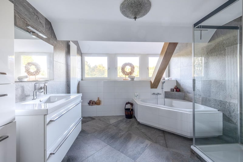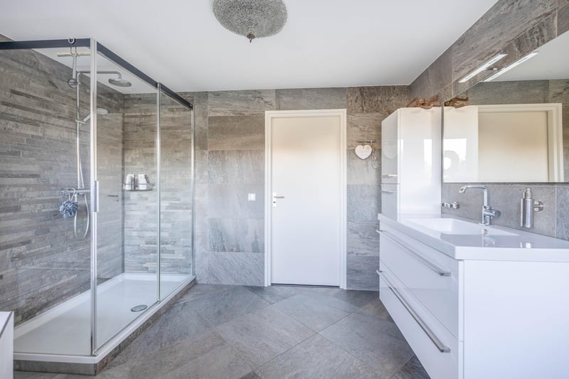 Kompletne zakwaterowanie dla koni, w tym wolnostojący dom, mieszkanie, biuro, hala jeździecka z krytą areną i łącznie 31 boksami dla koni, arena zewnętrzna, zadaszona bieżnia, lonżownik, kilka wybiegów, pastwisko, magazyn / stodoła polowa i wolnostojąca szopa. Wszystko to znajduje się na przestronnej działce o powierzchni ponad 4 hektarów i oferuje wiele możliwości dla profesjonalnego miłośnika koni! DOM Wolnostojący dom obejmuje atrakcyjny salon, kuchnię, pomieszczenie gospodarcze i piwnicę na parterze. Na 1. piętrze znajdują się 3 przestronne sypialnie i przestronna łazienka. Poddasze znajduje się na 2 piętrze. Otaczający ogród jest pięknie zagospodarowany i wyposażony w trawnik, nasadzenia, drzewa i kilka tarasów. Parter: W holu wejściowym znajduje się podłoga z PCV w jodełkę, częściowo ceglane / częściowo stiukowe ściany i stiukowy sufit. Hol zapewnia dostęp do salonu, szafki na liczniki i poprzez stałe schody jest dostęp do 1. piętra. Przedpokój ma podłogę z PCV w jodełkę, częściowo murowane / częściowo stiukowe ściany i stiukowy sufit. Przedpokój zapewnia dostęp do salonu, szafki na liczniki i poprzez stałe schody jest dostęp do 1. piętra. Przestronna kuchnia jest również wyposażona w tę samą podłogę PCV w jodełkę. Ściany i sufit zostały otynkowane. Układ kuchni jest w kształcie litery U z wyspą do przechowywania. Kuchnia jest wyposażona w zmywarkę, kuchenkę mikrofalową, zlewozmywak, 5-palnikową płytę gazową i lodówkę. Z kuchni jest dostęp do piwnicy. Piwnica jest w pełni wyłożona kafelkami i wyposażona w kukułkę oraz okno. Znajdują się w niej stałe półki i drewniane schody. Właz zapewnia dostęp do przestrzeni pod domem. Praktyczne pomieszczenie gospodarcze jest częściowo wyłożone kafelkami, a podłoga jest wyłożona kafelkami z ogrzewaniem podłogowym. Praktyczne szafy przesuwne zapewniają miejsce do przechowywania. Tutaj znajduje się kocioł centralnego ogrzewania, ogrzewanie podłogowe i przyłącza do urządzeń myjących. Z pomieszczenia gospodarczego jest dostęp do toalety i podwórka. Toaleta jest w pełni wyłożona kafelkami i wyposażona w umywalkę oraz pływającą toaletę. 1 piętro: Obszerne podest zapewnia dostęp do 3 przestronnych sypialni i łazienki. Sypialnia I jest wyłożona wykładziną, z natryskiwanymi ścianami i natryskiwanym sufitem. Z tego pokoju stałe schody zapewniają dostęp do strychu. W pokoju znajduje się praktyczna szafa wnękowa. Sypialnia II jest również wykończona wykładziną dywanową, natryskiwanymi ścianami i natryskiwanym sufitem. Stałe szafy przesuwne zapewniają miejsce do przechowywania. Przestronna łazienka jest w pełni wyłożona kafelkami i wyposażona w wannę, kabinę prysznicową, umywalkę z szafką i grzejnik dekoracyjny. Toaleta jest w pełni wyłożona kafelkami i wyposażona w pływającą toaletę. Bardzo przestronna główna sypialnia była wcześniej podzielona na dwie sypialnie. Jest to stosunkowo łatwe do zrealizowania. Pokój jest wykończony wykładziną dywanową, ścianami spachtelputz i sufitem natryskowym. Praktyczna garderoba i przesuwne szafy zapewniają miejsce do przechowywania. Wiele okien zapewnia mnóstwo naturalnego światła. Ogród: Ogród otaczający dom jest pięknie zagospodarowany i dobrze utrzymany. W ogrodzie znajdują się granice z bylinami, drzewami, trawnikiem i kilkoma tarasami. Z przodu znajduje się taras, z tyłu taras ma bardzo piękny i atrakcyjny baldachim. Baldachim jest wykonany z dębu i ma szklaną ścianę. Dach jest pokryty trzciną. Z tarasu roztacza się piękny widok na łąki. Krótko mówiąc, piękne miejsce! Nieco dalej znajduje się woliera i kolejny zadaszony taras. Stąd również roztacza się piękny widok na łąki. ZAKWATEROWANIE DLA KONI Zakwaterowanie dla koni obejmuje wolnostojącą halę jeździecką z krytą areną (ok. 20 mtr. x 60 mtr), stajnię z recepcją i łącznie 31 boksów dla koni podzielonych na 2 stajnie, biuro, warsztat i przylegające mieszkanie. Część stajenna po lewej stronie jest wyposażona w 16 boksów dla koni. Boksy te mają częściowo drewniane / częściowo malowane proszkowo i częściowo ocynkowane ściany przednie. Przegrody są murowane i częściowo zajęte. Drzwi w przednich ścianach są na zawiasach. 2 boksy są wyposażone w częściowo plastikowe / częściowo ocynkowane ściany przednie i działowe oraz drzwi przesuwne. Jest też 1 boks dla kucyka. Istnieją 2 strefy mycia i solarium. Myjnie są wyposażone w dopływ ciepłej i zimnej wody. Z obszaru stajni jest dostęp do hali, w której znajdują się 2 siodlarnie. Z tego holu jest również dostęp do recepcji i krytej areny. Przestronna recepcja jest wykończona podłogą wyłożoną kafelkami, częściowo murowanymi/częściowo stiukowymi ścianami i sufitem systemowym. Blok toalet składa się z toalety, toalety dla osób niepełnosprawnych i portalu z 2 umywalkami. Jest też kompletna kuchnia. Kuchnia wyposażona jest w piekarnik, kuchenkę mikrofalową, zmywarkę, wbudowany ekspres do kawy, zlewozmywak i płytę grzejną. W recepcji znajduje się szafka na liczniki. Znajduje się w niej kocioł dwufunkcyjny centralnego ogrzewania. W pomieszczeniu znajduje się również system alarmowy. Z recepcji roztacza się piękny widok na krytą arenę. Francuskie drzwi zapewniają dostęp do podwórka. Sąsiadująca kryta arena (ok. 20 m x 60 m) jest wyposażona w podłogę typu ebb and flow i otoczenie z twardego drewna (Horsmans). Świetlik w kalenicy i okna w ścianie końcowej zapewniają naturalne światło i wentylację. Ponadto arena jest wyposażona w lustrzaną ścianę. Brama rolowana na tylnej ścianie zapewnia dostęp do podwórza. Z krytej hali jest dostęp do stajni po prawej stronie. W stajni znajduje się 13 boksów dla koni. Boksy te (ok. 4 mtr. x 3 mtr.) są wyposażone w częściowo malowane proszkowo / częściowo ocynkowane drzwi na zawias