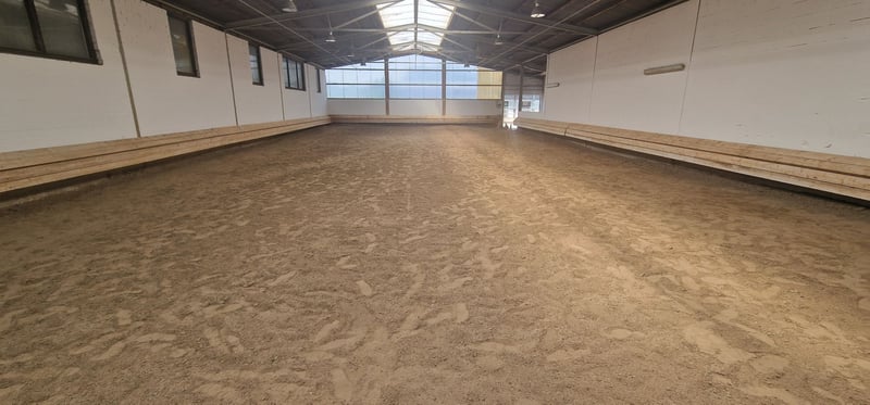 Professional equestrian facility for high-level sports in the Rhine-Neckar metropolitan region. The property is well-connected in the greater Mannheim, Worms, Speyer, Ludwigshafen area. The facility is well-maintained, fully utilized, and meets all equestrian requirements. The equestrian center is spaciously built and has excellent transport links. The facility is based on a very nice architectural concept. The specified location is not identical to the actual site to protect the identity. Area owned: approx. 4 ha Number of horses: approx. 45 horses Training facilities: – Riding arenas – Riding areas Types of accommodation: – Paddock boxes – Stalls Miscellaneous: Energy performance certificate is in preparation. The purchase price is plus 3.57% broker's commission including VAT. The inventory, machinery, and PV system are not included in the purchase price. The specified location is not identical to the actual site to protect the identity. We would be happy to provide you with detailed information. Please contact us. Thank you. Further pictures of this property and additional real estate offers can be found at www.wir-immobilien.com W.I.R. Immobilien - Your specialist real estate agent for equestrian facilities and agricultural properties.