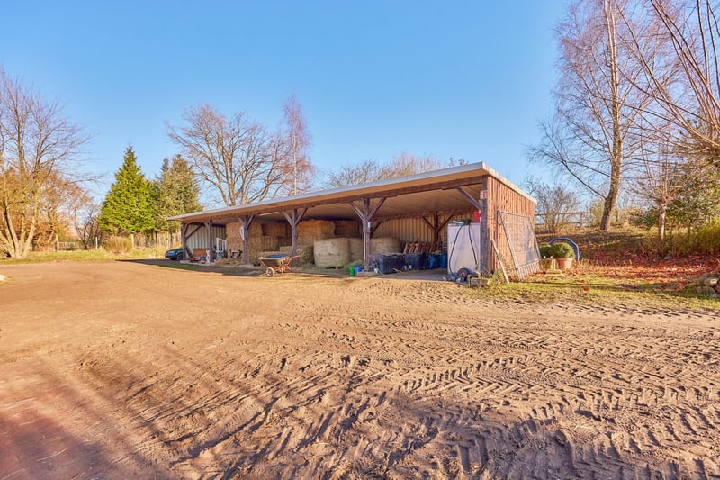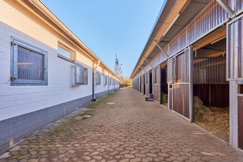 Equestrian Facility in Lower Saxony – Located in Hanstedt – For Sale! Professional facilities for sport and comfortable living for the family! Property Description: This well-maintained riding estate in Hanstedt-Allenbostel offers approximately 28,959 m² of land, providing ideal conditions for professional equestrian sport as well as for the entire horse-loving family. The main house, built in 1982, features around 128 m² of living space, constructed as a prefabricated building with plastic double-glazed windows. The roof was renovated in 2019, and the bathroom and ground-floor kitchen were modernized in 2023. The building is not basemented; the gable roof, façade, and intermediate ceiling are insulated. The living area is complemented by a circa 60 m² guesthouse from 1900, which requires renovation. It also has double-glazed windows, tiled and PVC floors. The horse area includes stables for a total of 23 horses. Adjacent to the indoor riding arena are 13 Röwer & Rüb stalls with pivoting fronts, two grooming areas with rubber mats, a wash station, and a saddle room. Additionally, there are 10 modern outdoor boxes from the brand Drenoflex, built in 2019. The indoor riding arena, built in 1982, measures 20 x 40 meters, equipped with a Fairground surface, an irrigation system, and LED lighting. Connected is a cozy rider’s lounge (approximately 60 m²) with a terrace, wood stove, and small kitchenette, added in 1991. For training, there is a sand riding arena (35 x 75 m, 2019), a grass jumping field (35 x 75 m, 2019), a lunging arena for four horses (2019), and a 25-meter diameter round pen (2019). The estate also features a nearly new hay storage, a machine shelter, customer parking, five sand paddocks (two designated for stallions), and pastures directly on the property. The estate combines comfortable living with professional horsekeeping conditions on well-maintained grounds, making it suitable for private owners as well as commercial use. Features: Main House: - Year of construction: 1982 (floor plan available in gallery) - Living area: approx. 128.92 m² - Heating: electric storage heaters (wood stove purchased but not installed) - Construction: prefabricated house - Windows: plastic, double-glazed - Roof: gable roof, insulated - Renovations: roof in 2019, ground-floor bathroom in 2023 Guesthouse: - Year of construction: 1900 (no plans available) - Living area: approx. 60 m² - Heating: electric storage heaters - Windows: plastic, double-glazed - Condition: requires renovation Stable at the Indoor Arena: - Year of construction: 1982 - Stalls: 13 (Röwer & Rüb, pivoting fronts for mechanized mucking out) - Grooming areas with rubber mats, solarium - Wash station with hot water - 2 saddle rooms - 1 laundry room for horse blankets, customer WC with shower Outdoor Boxes: - Year of construction: 2019 - Horse boxes: 10, plus 1 saddle room - Manufacturer: Drenoflex Indoor Riding Arena: - Year of construction: 1982 - Dimensions: 20 x 40 meters - Surface: Fairground - Irrigation system available - Connected to a stall corridor - Rider’s lounge with outdoor terrace overlooking the arena, added in 1991 (approx. 60 m², wood stove for heating, small kitchenette) Sand Riding Arena: - Year of construction: 2019 - Dimensions: 35 x 75 meters - Surface: Fairground, drained - Enclosed with a hedge Grass Riding Arena: - Year of construction: 2019 - Dimensions: 35 x 75 meters - High-quality wooden fencing Lunging Arena: - Year of construction: 2019 - Diameter: 25 meters - Surface: Fairground, drained - Fencing present Hay Storage: - Year of construction: 2019 - Size: 10 x 25 meters - Floor: Concrete Additional Facilities: - Machinery shelter - Manure disposal via container - Five sand paddocks (two for stallions) and pastures directly on the estate (wooden fencing) Location: Allenbostel is a district of the municipality of Hanstedt in the Samtgemeinde Bevensen-Ebstorf, Lower Saxony. Despite its rural setting, the village offers excellent regional transport links. Major roads provide quick access to the A7 and A2 motorways, ensuring swift connections to Hamburg, Hanover, and Braunschweig. Hannover-Langenhagen Airport is about an hour’s drive away, offering extensive domestic and international flights. Hanstedt-Allenbostel provides a peaceful, village-like quality of life with good basic services nearby. In the surrounding towns of Hanstedt, Ebstorf, and Uelzen, there are supermarkets, bakeries, butchers, and other retail and service providers. Larger shopping centers, specialty stores, and diverse restaurants are available in Uelzen, which can be reached in a short drive. Families benefit from well-developed educational and childcare options, with kindergartens in neighboring communities and primary schools easily accessible. Secondary schools, high schools, and vocational colleges are located in Uelzen and Ebstorf, well connected by school bus routes. Medical care is also available, with general practitioners, dentists, and pharmacies in the surrounding villages and in Uelzen, where specialists, physiotherapists, and the Helios Clinic Uelzen provide comprehensive inpatient and outpatient services. Life in Hanstedt-Allenbostel is characterized by tranquility, nature, and active community life. Clubs, fire brigades, and village associations foster a lively social environment. The rural surroundings offer numerous opportunities for leisure activities such as cycling, horseback riding, and walks in nature. Energy Certificate: Main energy source: Electricity Energy Performance Certificate: Consumption certificate End energy demand: 180.05 kWh/(m²·a) Energy efficiency class: F Year of construction according to energy certificate: 1982 Further Information: Unauthorized access to the riding estate outside of a viewing appointment with the authorized broker Fetter Immobilien is prohibited and not permitted by the owners! A commission of 3.57% of the purchase price including VAT is payable upon n