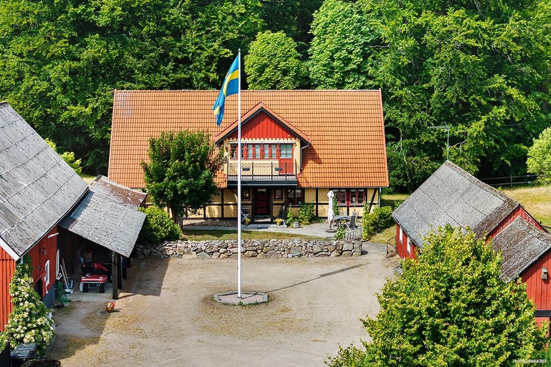 Am Tor zu Österlen – einer der begehrtesten und landschaftlich schönsten Regionen Schwedens – liegt Bäckolmen, ein außergewöhnliches Reiteranwesen, das Träume, Lebensqualität und unendliche Möglichkeiten vereint. Nur wenige Kilometer außerhalb von Brösarp leben Sie umgeben von einer der beliebtesten Landschaften Schwedens, in der sanfte Heideflächen, weite Naturschutzgebiete und ein tiefes Gefühl von Ruhe zu Harmonie und Entspannung einladen. Brösarp ist das Dorf, in dem sich die Landschaft öffnet – hier treffen sanfte Hügel, blühende Flanken und der charmante, kleingliedrige Charakter des Ortes auf eine lebendige Vielfalt an Hofläden, Cafés und regionalen Spezialitäten. Mit der Nähe zu den salzigen Meereswellen und den goldenen Sandstränden von Haväng, umgeben von malerischen Dörfern, herrlichen Wanderwegen und authentischen kulinarischen Erlebnissen bietet diese Lage eine unvergleichliche Kombination aus atemberaubender Natur, lebendiger Kultur und einer Lebensqualität jenseits des Gewöhnlichen – perfekt für alle, die einen harmonischen und inspirierenden Ort zum Zuhause machen suchen. Für Jägerliebhaber bietet Bäckolmen eine seltene Gelegenheit. Das Anwesen verfügt über ein beeindruckendes Hirschgehege, das früher für Jagdoperationen genutzt wurde, mit gut durchdachten und gepflegten Anlagen – eine einzigartige und wertvolle Ressource für jeden, der den Traum vom ländlichen Leben verwirklichen möchte, bei dem Jagd, Naturschutz und Wildtiermanagement eine natürliche Rolle im Alltag spielen. Das Anwesen umfasst ca. 16 Hektar Land sowie ein gepflegtes 1.500 qm großes Grundstück – ideal sowohl für professionelle Reitsportaktivitäten als auch für ein Familienleben auf dem Land in schöner Umgebung. Die moderne, voll ausgestattete Reithalle bietet 9 Boxen, einen großzügigen Sattelraum, Futterraum und eine praktische Waschhalle. Zusätzlich gibt es zwei offene Scheunen, Außenboxen und einen großen Unterstand – perfekt für die Zucht, mit speziellen Einrichtungen für Stuten und Fohlen. Das Anwesen beherbergt außerdem eine etablierte Besamungsstation, betrieben von den renommierten Züchtern des Stuteri K2, was die Anlage besonders attraktiv für Pferdezucht und Ausbildung macht. Alles ist vorhanden, damit Sie sofort eine professionelle Reitanlage weiterführen oder ausbauen können – in einer inspirierenden und motivierenden Umgebung. Das Wohnhaus wurde 2001 nach einem Brand sorgfältig und geschmackvoll neu aufgebaut. Im Inneren begrüßt Sie ein warmes, einladendes Zuhause voller Charakter, mit offenem Grundriss im Erdgeschoss, einem charmanten Kamin und großzügigen Wohnbereichen, die eine gemütliche und behagliche Atmosphäre schaffen – gleichermaßen geeignet für den Alltag und festliche Anlässe. Große Fenster bieten weite Ausblicke über die grünen Weiden und die ruhige Landschaft – ein Ort zum Leben, Inspirieren lassen und das ganze Jahr über genießen. Zusätzlich bietet eine separate, charmante Wohnung sowie eine gemütliche Jagdhütte große Flexibilität – sei es für Vermietung, Mehrgenerationenwohnen, Unterbringung für Stallpersonal oder Gäste. Ideal für alle, die ländliches Leben mit Einkommensmöglichkeiten verbinden möchten oder einfach Raum für Familie und Freunde in einer schönen, einladenden Umgebung schaffen wollen. Ein Fluss schlängelt sich entlang der Grundstücksgrenze und führt zu einer privaten kleinen Insel mit Brücke – ein magischer Ort für lange Sommerabende, ruhige Morgen mit Kaffee und Vogelgesang oder unvergessliche Abende unter freiem Himmel. Die Umgebung bietet reiche Tierwelt, unberührte Stille und atemberaubende Ausblicke in alle Richtungen – eine wirklich einzigartige Umgebung für Ruhe, Inspiration und Freiheit. Das Gebiet um Brösarp und die Drakamöllans väg 24 vereinen natürliche Schönheit, Nähe zum Meer, charmante Nachbardörfer und ein umfangreiches Angebot an Geschäften, Restaurants, Cafés und Unterkünften. Hier erleben Sie das Beste aus beiden Welten – idyllisches Landleben mit kurzer Anbindung an Dienstleistungen, Schulen, Spielplätze, Einkaufsmöglichkeiten, Kultur und hervorragende Verkehrsanbindung. Ein Ort, der gleichermaßen für den dauerhaften Aufenthalt oder die Freizeit geeignet ist, wobei die Wohnung und die Jagdhütte zusätzliches Einkommen generieren können – ein Ort, um ein Leben im Einklang mit der Natur zu gestalten, ohne auf alles Wesentliche verzichten zu müssen. Willkommen zur Besichtigung – einfach „Bäckolmen’s insemination station“ in Ihren GPS-Navigator eingeben.