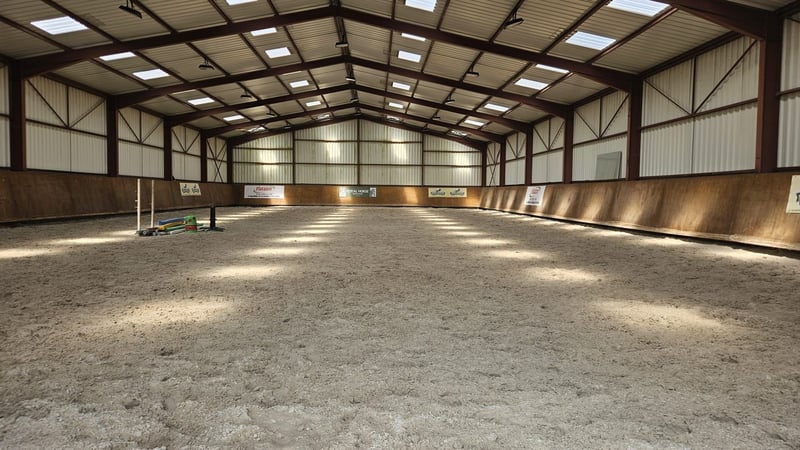 Complete equestrian facilities on 5.5 hectares: outdoor arena 45x80 m, covered riding hall 20x42 m, 29 stables with automatic waterers, lunging ring, walker area, hot water showers, tack rooms, paddocks, pastures, hay and straw storage, double-valve forage system, laboratory, insemination room. Main house of 230 m² plus an independent studio and a T2 apartment to renovate, with additional spaces to develop. A turnkey estate combining comfort and performance. Agency fee: €40,000 including VAT.