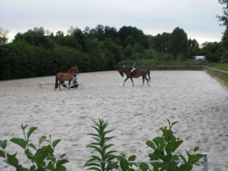 Pour des raisons d'âge, je souhaite vendre mon centre équestre très bien établi, situé à 20 minutes à l'est de la limite de la ville de Dresde. Étant donné que j'ai fusionné le terrain avec le bâtiment de la carrière équestre, le terrain de saut d'obstacles, le manège de dressage, l'étang pour chevaux, etc., pour des raisons organisationnelles, la vente se fera sous forme de parts de copropriété sur l'ensemble du terrain de plus de 5ha, associé à la propriété exclusive du bâtiment de la carrière équestre, y compris le grand appartement de l'exploitant avec bureau (185m²) et un petit appartement pour le palefrenier (45m²), un terrain de saut d'obstacles de 3.000m² avec des obstacles naturels et le manège de dressage de 68x25m. Il est possible d'acheter soit la propriété exclusive du bâtiment de la carrière équestre + le terrain de saut d'obstacles + le manège de dressage pour 2 millions d'euros, soit des parts à partir de 10% pour 200.000€. De plus, il est possible d'acquérir environ 20ha de prairies + forêt avec un écurie de 400m² supplémentaire, par exemple pour un élevage séparé ou l'élevage de jeunes chevaux. Prix d'achat 500.000€. En périphérie de 01909 Bühlau, un village de 600 habitants. Atmosphère très rurale avec de grands pâturages, des champs environnants, et 150ha de forêt à 2km avec de nombreux chemins équestres.