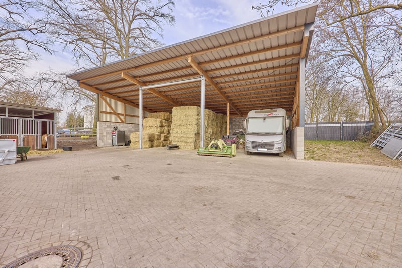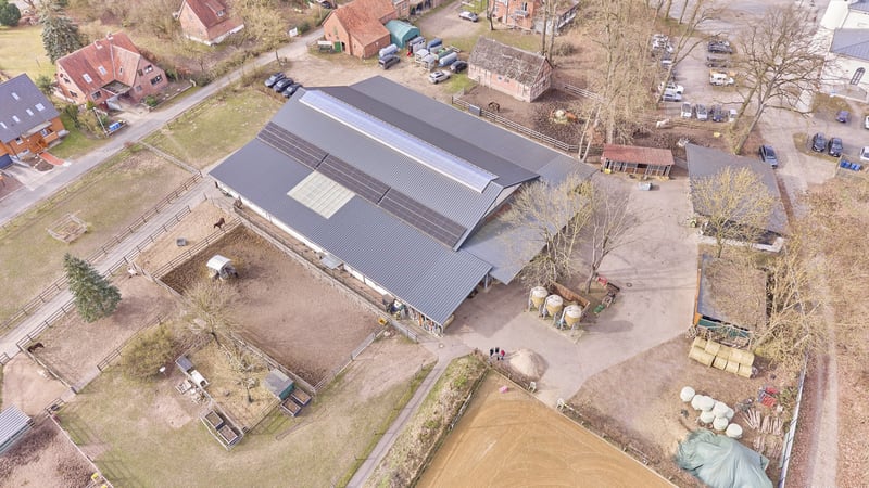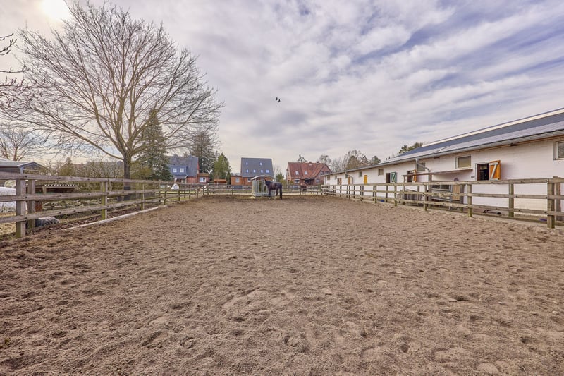 Bitte füllen Sie das nachfolgende Kontaktformular vollständig aus bevor Sie uns telefonisch kontaktieren. Vielen Dank für Ihr Verständnis! Reitanlage in Dannenberg (Elbe) im Landkreis Lüchow-Dannenberg mit bereits sanierten Stallungen und Reithalle zu verkaufen! Objektbeschreibung: Zum Verkauf steht eine umfassend sanierte Reitanlage in Dannenberg (Elbe) auf einem Grundstück von ca. 14.792 m². Die gesamte Hofanlage wurde zwischen 2021 und 2023 modernisiert, insbesondere sämtliche Dachflächen erneuert, wodurch sich die Anlage in einem deutlich aufgewerteten Gesamtzustand präsentiert. Das Wohnhaus aus dem Jahr 1968 verfügt über drei Wohneinheiten mit ca. 160 m² Wohnfläche und ist voll unterkellert. Die Bausubstanz ist massiv, der Zustand jedoch sanierungsbedürftig und bietet Entwicklungspotenzial. Beheizt wird über Strom-Nachtspeicheröfen. Vor dem Haus befinden sich PKW-Stellplätze sowie eine Einzelgarage. Eine Terrasse mit Gartenblick und ein Balkon im Obergeschoss runden das Wohnangebot ab. Die Stallungen (überwiegend Baujahr 1956) wurden 2021–2023 saniert und umfassen 4 Laufstallboxen (6×5 m), 13 Fensterboxen und 10 Innenboxen. Ergänzt werden Sattel- und Futterkammern sowie Wasch- und Putzplätze. Die Reithalle (20×40 m, Baujahr 1955) verfügt über einen hochwertigen Sand-/Vliesboden, LED-Beleuchtung und eine Beregnungsanlage der Firma Buchholz. 2023 wurde auf die sanierte Dachfläche eine PV-Anlage mit 29 kWp inkl. Pufferspeicher installiert (Eigenstromnutzung, Laufzeit bis 2043). Ergänzend steht eine Longierhalle (Ø 20 m, 2023) mit Stahlkonstruktion (Firma Molenkönig), sowie ein 30×70 m Reitplatz (2020, drainiert, beregnet, eingezäunt) zur Verfügung. Eine Bergehalle (2022, ca. 200 m²) ergänzt die Anlage. Direkt am Hof befinden sich Gras- und Sandpaddocks, die den Pferden kurze und komfortable Wege ins Freie ermöglichen. Weitere 1,5 ha können zusätzlich erworben werden. Die technische Ausstattung der Anlage rundet den professionellen Gesamteindruck ab und sorgt für einen effizienten, gut organisierten Betriebsablauf im täglichen Reit- und Stallmanagement. Ausstattung: Wohnhaus: - Baujahr: 1968, 3 Wohneinheiten - Wohnfläche: ca. 160 m² - Zustand: sanierungsbedürftig - Heizung: Strom (Nachtspeicheröfen) - Unterkellerung: voll unterkellert - Fenster: Doppelverglasung, Holz - Parkplätze für PKWs vor dem Haus, Einzelgarage - Gemütliche Terrasse mit Blick zum Garten, Balkon im 1.OG Stallungen: - Baujahr Gebäude: 1956, Saniert 2021 – 2023 - 4 Laufstallboxen (6 x 5 Meter) - 13 Fensterboxen - 10 Innenboxen - Sattelkammer und Futterkammer im Gebäude vorhanden - Waschplatz / Putzplätze - Dach: Trapezblech (Sandwichplatten mit 60 mm Stärke) aus 2021-2023 - Hersteller: Große Winkelmann Reithalle: - Baujahr: 1955 - Reitmaß: 20 x 40 Meter - Boden: Sand-/Vliesgemisch - Beleuchtet - Beregnungsanlage der Firma Buchholz - Holzkonstruktion - Dach: Trapezblech (Sandwichplatten mit 60 mm Stärke) aus 2021-2023 - Photovoltaikanlage: Aus dem Jahr 2023, 29 kWp, Pufferspeicher vorhanden (Eigennutzung), Laufzeit Ende 2043 Longierhalle: - Baujahr: 2023 - Durchmesser: 20 Meter - Boden: Sand-/Vliesgemisch - Beleuchtet - Beregnunganlage der Firma Buchholz - Stahlkonstruktion - Hersteller: Molenkoning Reitplatz: - Baujahr: 2020 - Reitmaß: 30 x 70 Meter - Boden: Sand-/Vliesgemisch, drainiert - Beregnungsanlage vorhanden - Einzäunung Weiteres: - Bergehalle, Baujahr: 2022 mit ca. 200 m² Bruttogrundfläche - Gras- und Sandpaddocks - Mistentsorgung per Container, geht wöchentlich zur Biogasanlage - Solarium inkludiert - Laufband inkludiert Lage: Dannenberg (Elbe) ist eine Stadt im Landkreis Lüchow-Dannenberg im äußersten Osten Niedersachsens. Die Stadt Dannenberg ist Mitgliedsgemeinde und Sitz der Samtgemeinde Elbtalaue. Die Stadt ist verkehrstechnisch über mehrere Bundesstraßen gut an das regionale und überregionale Straßennetz angebunden. Die Bundesstraßen B191, B216 und B248 verbinden die Stadt mit den umliegenden Mittelzentren wie Lüneburg, Uelzen und Salzwedel sowie mit weiter entfernten Oberzentren wie Hamburg, Hannover und Berlin. Im öffentlichen Nahverkehr besteht eine Anbindung über die Wendlandbahn. Dannenberg (Elbe) im Landkreis Lüchow-Dannenberg bietet eine ruhige, ländlich geprägte Lebensqualität mit einer soliden Grundversorgung und einem starken Bezug zur Natur. Für den Einkauf stehen mehrere Supermärkte, Bäckereien, Drogerien und kleinere Fachgeschäfte zur Verfügung. Ergänzt wird das Angebot durch regionale Anbieter und Wochenmärkte, auf denen frische Produkte aus der Umgebung verkauft werden, sodass die Nahversorgung insgesamt gut abgedeckt ist. Auch Familien finden in Dannenberg eine verlässliche Infrastruktur: Es gibt mehrere Kindertagesstätten und Kindergärten mit unterschiedlichen Betreuungs- und pädagogischen Konzepten sowie ein gutes schulisches Angebot mit Grundschulen, Oberschulen und einem Gymnasium, sodass auch höhere Bildungsabschlüsse direkt vor Ort möglich sind. Die medizinische Versorgung ist ebenfalls gegeben, unter anderem durch Haus- und Fachärzte sowie Apotheken, die die Versorgung mit Medikamenten sicherstellen; für spezialisierte Behandlungen werden die umliegenden größeren Städte wie Lüneburg oder Uelzen genutzt. Der Freizeit- und Kulturbereich ist stark von der naturnahen Lage geprägt: Die Elbtalaue bietet ideale Bedingungen für Spaziergänge, Radfahren, Reiten oder Wassersport, während lokale Vereine, Veranstaltungen, Märkte und kleinere kulturelle Angebote das gesellschaftliche Leben bereichern. Insgesamt verbindet Dannenberg eine ruhige, naturverbundene Wohnlage mit einer funktionierenden Infrastruktur und einem aktiven Gemeinschaftsleben. Energieausweis: Wesentlicher Energieträger: Strom (Nachtspeicheröfen im Haus) Bedarfsausweis Endenergieverbrauch: 131,03 kWh/(m²*a) Energieeffizienzklasse: E Baujahr laut Energieausweis: 1968, Energieerzeuger aus 1980 - 2010 Weitere Informationen: 