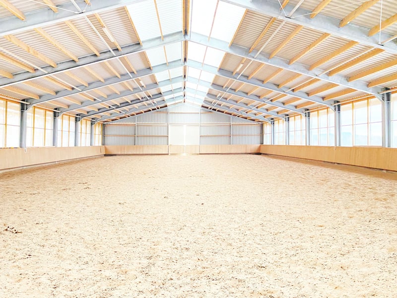 This lovingly developed riding facility offers horse enthusiasts a rare opportunity to realize their dream of living with horses in a peaceful natural setting—featuring functional infrastructure, ample space, and versatile usage options. Nestled in the gentle hills of South Thuringia, the property is quiet and directly integrated into the surrounding nature—ideal for those who wish to provide their horses with a species-appropriate environment and create a personal retreat in the countryside. The A73 motorway is only a 9-minute drive away, ensuring quick access from all over Thuringia and Franconia. The well-planned layout of the estate, short distances between the stable, indoor riding arena, and paddocks, as well as the adjoining pastures, enable smooth daily routines. Whether for private horse keeping, a small family-run boarding operation, or a combination of personal use and partial leasing—this property can be adapted flexibly to individual wishes.