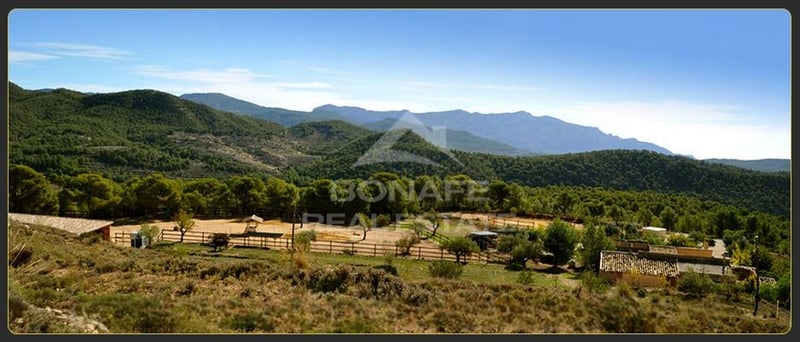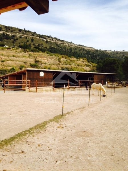 Welcome to this spectacular Jijonenca estate, ideal for horse lovers who wish to live surrounded by nature without giving up proximity to the city. Located in a quiet mountain area of Jijonenca in the province of Alicante, this property is just 20 km north of the city of Alicante. ???? A haven for riders and nature lovers ???? On a 22,000 m² plot, this equestrian estate offers everything needed for a comfortable life with horses: * Main house of 135 m² with Swedish stove and heating/cooling system * Open stable for up to 12 horses, divided into three zones * Riding arena (37 x 18 m) with 20 cm of sand, drainage system, and water supply * Round pen (18 m diameter) for training * Fully insulated tack room, with the option of use as living quarters * Horse shower, hay barn, sheds (37 x 3.30 m) with rubber flooring (5 x 6 m) * Automatic waterers and night lighting Direct access to spectacular equestrian trails From the estate, you can enjoy riding routes through mountains and natural trails without needing to cross roads. This impressive estate is not just a property but a piece of history, carefully restored to offer comfort and elegance in an incomparable natural setting. Built around the year 1900, this villa has been renovated respecting its century-old character, with improvements that make it an ideal refuge for modern living without losing its original essence. House layout: Ground floor: Dining room, living room, kitchen, pantry, and one bedroom. Upper floor: Hallway, bathroom with shower and WC, 3 spacious bedrooms Additional tack room, with the possibility of conversion into living quarters Swimming pool (8 x 4 m) to relax under the Mediterranean sun Strategic location – Tranquility and comfort in one place with proximity to the city if desired. Road access: 200 m Shops and supermarkets: 7 km Beach: 22 km Alicante Airport: 29 km Restaurants: 1,500 m Proximity to international schools, hospitals, shopping centers, and nightlife This estate combines the best of both worlds: an equestrian life surrounded by nature with all the conveniences of the city just minutes away. Request a visit now! We will be delighted to assist you and help with financing if necessary. Important Note: Currently, the property is unoccupied and unfurnished. Legal notice: The information described is merely informative, not legally binding, and may contain some errors. (TAXES NOT INCLUDED IN THE PRICE).