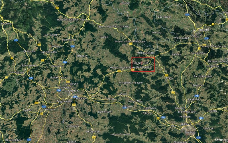 Set on a spacious property totaling approximately 1.1157 hectares, nestled in a quiet village edge location, this versatile estate perfectly combines living, animal husbandry, and commercial use. The farm has been vacant for about a year and a half and was previously owned by the late former owner. As such, it now offers an exceptionally flexible starting point for new ideas and concepts of utilization. The property comprises a modern main house, a large former chicken coop, and a fully equipped slaughterhouse with photovoltaic system. The extensive grounds include around 5,000 m² of pasture, partly overgrown with hedges, shrubs, and individual fruit trees. The entire stable area was previously fenced with fox-proof barriers—using concreteed metal posts and former wire mesh—providing a solid foundation for almost any type of animal husbandry. The former agricultural operation was professionally managed, which means both the stable and slaughterhouse are in excellent structural condition, with well-thought-out room layouts and technical facilities. For horsekeeping, the facility is particularly attractive: 5–7 horses can be housed comfortably. The large rear section is ideal for setting up a year-round open or free-range stable, while the front area can be used for feed storage and organization. A well is also available. The photovoltaic system on the slaughterhouse will be fully operational until February 2028 and currently generates a gross feed-in tariff of approximately €587 per month. ________________________________________ Main House (Built in 2007) Total living area: approx. 340 m² Separate apartment with private entrance: 60 m² • Village edge location with a large, well-maintained garden • Combined oil and wood-chip heating, predominantly underfloor heating, radiators in bedrooms • Two spacious terraces with floor-to-ceiling windows, balcony upstairs • Modern double garage with electric door • Kitchen with fitted units and a Swedish stove included in the sale The house is in very good condition and ideal for large families, multi-generational living, or partial rental. The separate apartment can also be used as a holiday apartment or Airbnb. ________________________________________ Stable Building (Built in 2006) Size: 45 m × 10 m (of which 20 m × 10 m is two-story) Features: • Propane gas installation, heating available • Small kitchenette and toilet inside the stable • Large box stalls and paddock options • Fox-proof fencing • Suitable for poultry, sheep, goats, or horsekeeping Thanks to its robust construction and size, the stable offers excellent possibilities for animal husbandry, storage, or workshop use. A conversion for commercial or hobby purposes is also easily feasible. ________________________________________ Slaughterhouse with Antechamber (Built in 2006) Slaughter area: 12 m × 12 m Canopy: 12 m × 5.5 m Interior slaughter rooms: 12 m × 6.5 m Rooms/Facilities: • Possible future office or tack room • Stainless steel equipment of the slaughterhouse included in the sale • Large covered area for feed or hay storage The building is versatile—suitable for commercial use, storage, horsekeeping, or workshop facilities. The large canopy is perfect for dry hay storage. ________________________________________ Photovoltaic System • 21 kWp on the slaughterhouse • Full feed-in tariff until February 2028 • Current monthly gross income: approx. €587 • Included in the sale ________________________________________ Property & Usage Options • Total area: approx. 1.1157 ha • About 5,000 m² of meadow with hedges and fruit trees (can be removed if desired) • Very suitable for horsekeeping (ideal for 5–7 horses) • Open stable area possible in the rear section • Large courtyard and driveway areas • Spaces for storage, workshop, machinery, or animal husbandry Separate sale options available: • Main house on approx. 1,600 m² plot, sold separately • Stable + slaughterhouse on approx. 9,500 m², also available separately ________________________________________ Remaining work to be done: • Exterior plaster on the main house • Partial exterior plaster on outbuildings Location The estate is located in Birkach, a quiet district of the municipality of Burgpreppach in the Haßberge district, at the edge of the Bamberg metropolitan region. The location combines rural idyll with excellent accessibility to surrounding towns and central amenities. Cities such as Schweinfurt, Coburg, or Bamberg are between 30 and 45 minutes away by car, offering a full range of shopping, cultural, and leisure facilities, as well as schools, doctors, and public services. Birkach is thus ideal for those seeking a spacious property in a natural setting without sacrificing proximity to an urban center. Transport links are excellent: the nearby B 303 provides quick access to Bamberg and towards Haßfurt or Ebern. For longer-distance travel, the A 73 is easily reachable, connecting Nuremberg and Coburg efficiently. This makes the location very suitable for commuters or commercial use. Despite the good transport connections, the environment remains pleasantly quiet and rural. The estate is situated at the village edge, surrounded by fields, meadows, and occasional farms—a rare combination of natural living, generous open spaces, and excellent infrastructural accessibility.