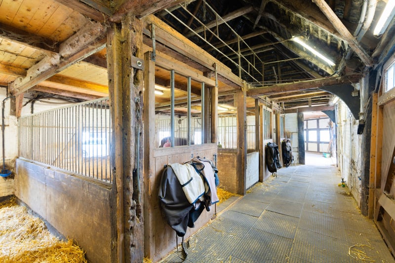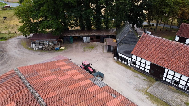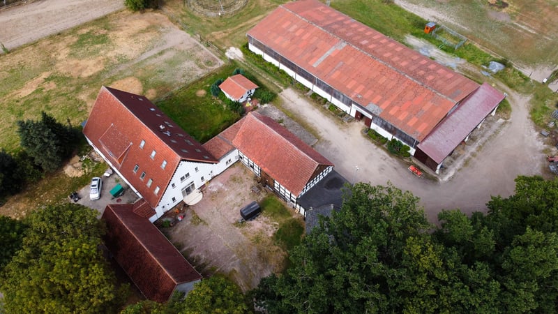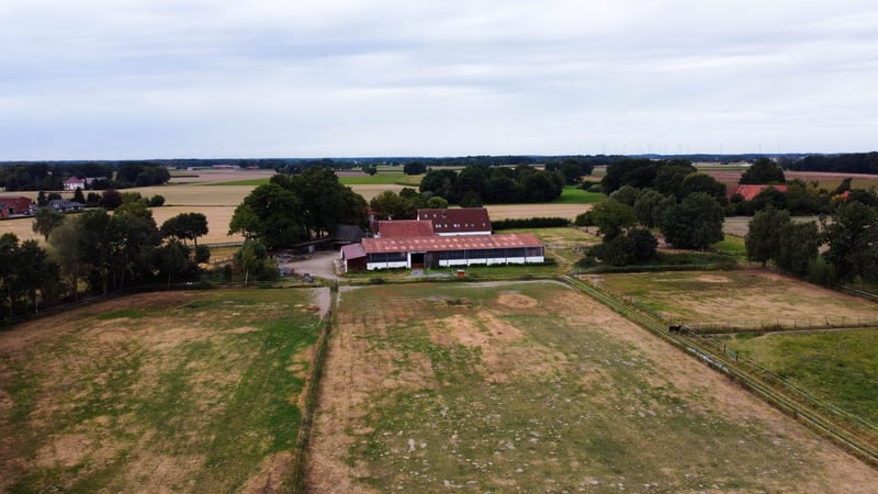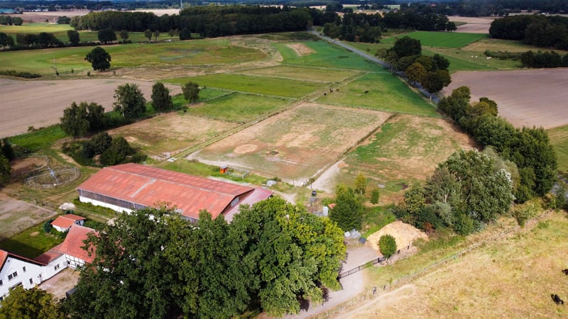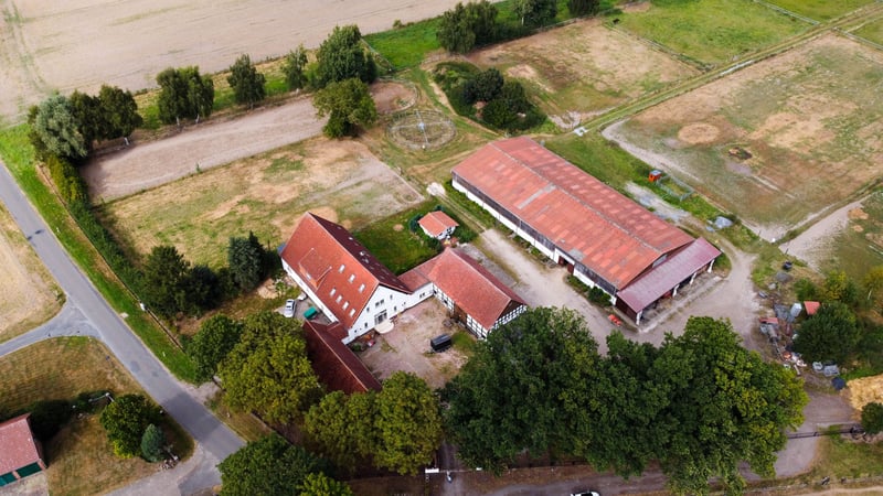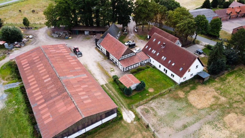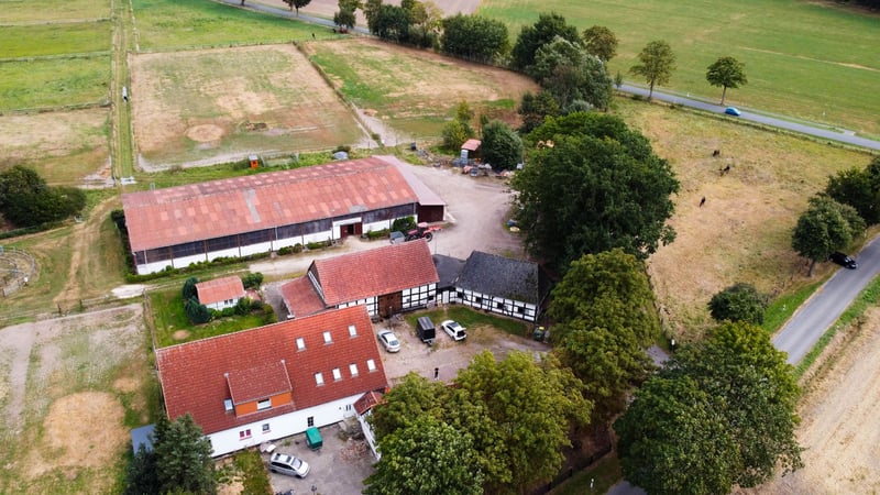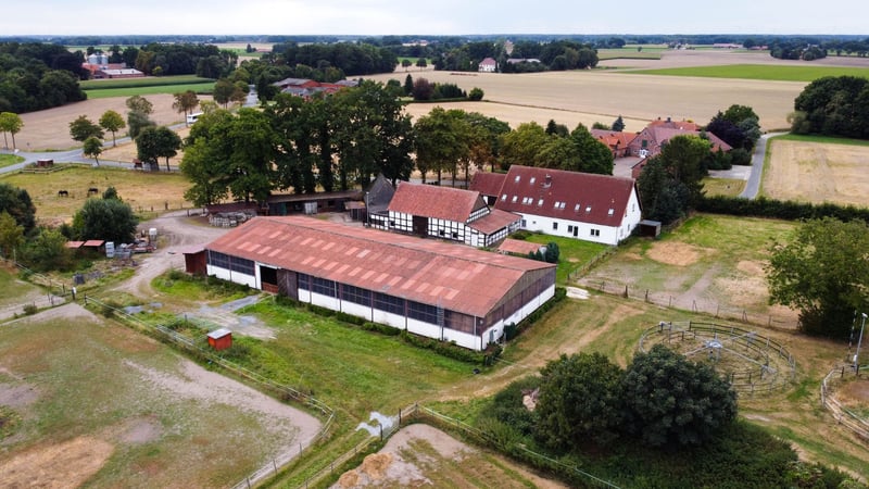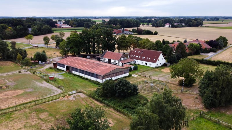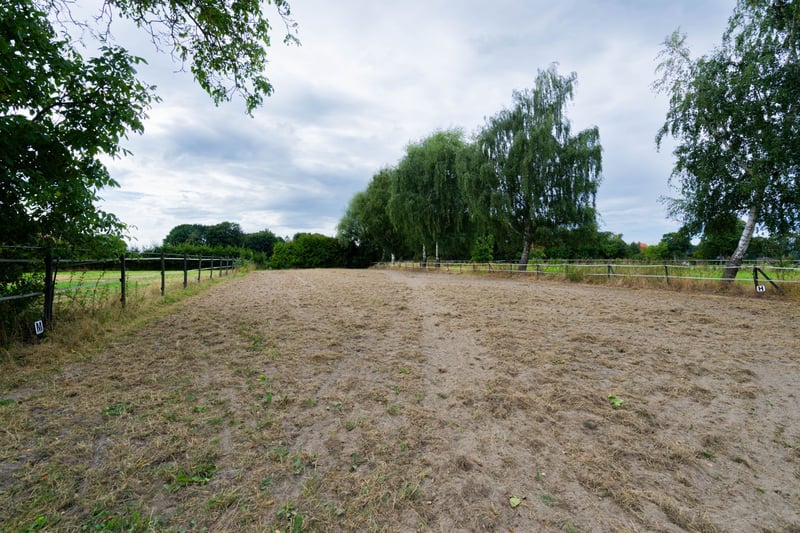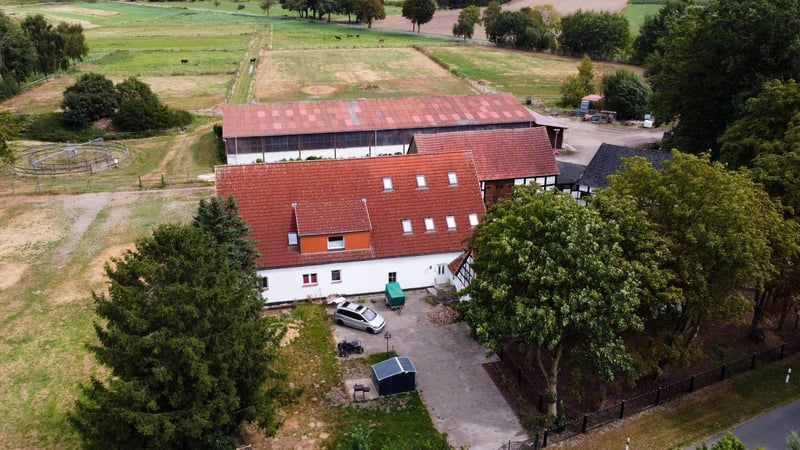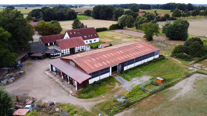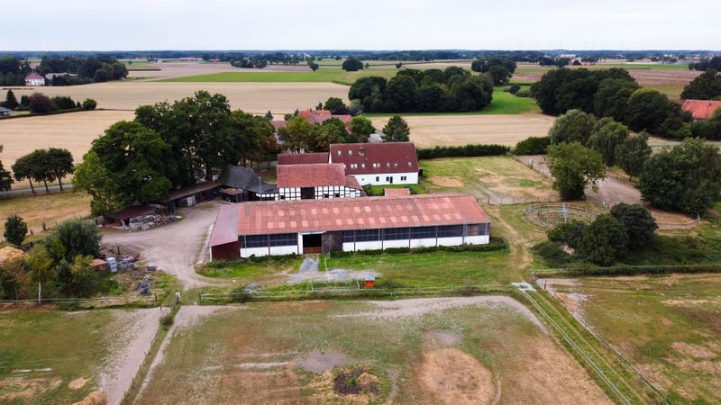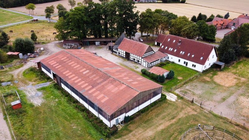 Discover a unique property offering: a well-maintained riding estate with extensive facilities, available for purchase in the idyllic surroundings of Bruchhausen-Vilsen. Situated on an impressive plot of approximately 56,788 m², including leased land that extends the total area to around 7.5 hectares, this estate provides versatile options for horse enthusiasts and agricultural lovers alike. The property is divided into three spacious residential units with a total living area of approximately 450 m² and 12 rooms, offering ample space for individual living concepts. The estate is in excellent condition, ready for immediate move-in — availability is by arrangement. For horsekeeping and training, there are two stable blocks with a total of 11 boxes and a covered wash area. The riding facilities are complemented by a large outdoor riding arena, an indoor riding hall, a lunging ring, a round pen, and extensive pastures, ideal for comprehensive horse management and care. Another highlight is the inclusion of agricultural machinery and equipment in the purchase price, significantly easing entry into farm management. Choose a forward-looking investment and experience the comfort and possibilities this rural riding estate offers. Contact us for further information or to arrange a viewing. **Features:** This exceptional property boasts impressive amenities attractive to both horse owners and investors. The estate includes three large garages and three separate residential units: the ground floor features about 150 m² of living space, while the first floor houses two units of approximately 100 m² each, one of which is designed as a charming maisonette. All apartments have separate entrances, ensuring a high degree of privacy. For horse owners, the facilities include 11 spacious horseboxes with a hayloft above, a saddle and feed room with a separate stable for boarders, and a Münzbetrieb horse solarium. The covered wash area and outdoor wash station are perfect for grooming your animals. The top-class indoor riding hall measures 20 x 45 meters and is equipped with a modern irrigation system. A coded locking system and a practical folding roof add extra comfort. Additionally, there is an 18-meter round pen and a lunging ring. A large outdoor paddock with shelter and direct water supply is located close to the house. The extensive estate is fully irrigated and has a separate, secured access for boarders via code. Several containers provide ample storage space. Agricultural machinery, including tractors and hay wagons, are also available, facilitating farm work. For relaxation, there is a small garden and sauna house on the estate. Overall, this property offers an ideal combination of residential comfort and top-tier equestrian facilities — a paradise for nature lovers and horse enthusiasts. **Location:** This unique property is situated in a secluded, idyllic setting in the picturesque surroundings of Bruchhausen-Vilsen, in the district of Scholen. The estate offers a peaceful and private atmosphere, perfect for horse lovers or those seeking to escape city life. Despite its rural location, essential amenities are just a short drive away. The charming town center of Bruchhausen-Vilsen is only 5.2 km away and offers various shopping options, cafes, and restaurants for leisurely visits. For families with young children, a kindergarten is conveniently located just 0.7 km away. Educational facilities are also easily accessible: a primary school is 5.8 km away, while a secondary school and a grammar school are each located about 7.8 km from the estate. The nearest motorway connection can be reached after a relaxed drive of 32.5 km, providing access to more distant destinations. This location combines the tranquility of country living with practical proximity to urban amenities and excellent infrastructure, making it an ideal place to build your dream riding stable. **Additional Information:** The energy performance certificate is currently being prepared and will be available for viewing. This offer is free of brokerage fees for the buyer. Subject to prior sale and modifications. Rabsahl Immobilien Kontor assumes no liability for the accuracy of the information provided. All details are based on the information supplied by the owners. Would you like to sell a property or find out its value? Contact us! We are happy to assist with all your real estate questions. Terms and conditions as well as the privacy policy of Rabsahl Immobilien Kontor apply. Rabsahl Immobilien Kontor Philipp Rabsahl M.Sc. LL.M. Am Walde 13 21379 Boltersen moin@rabsahl-immobilien.de www.pferdeimmo.com