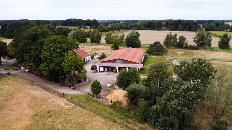 BESCHREIBUNG: Entdecken Sie ein einzigartiges Immobilienangebot: Ein gepflegter Reiterhof mit umfangreichen Einrichtungen, der in der idyllischen Umgebung von Bruchhausen-Vilsen zum Kauf zur Verfügung steht. Auf einem beeindruckenden Grundstück von ca. 56.788 m², inklusive Pachtflächen, die die Gesamtfläche auf rund 7,5 ha strecken, bietet dieser Hof vielfältige Nutzungsmöglichkeiten für Pferdeliebhaber und Landwirtschaftsbegeisterte. Die Immobilie teilt sich in drei großzügige Wohneinheiten mit einer Nutzfläche von ca. 450 m² und insgesamt 12 Zimmern, die reichlich Platz für individuelle Wohnkonzepte bieten. Der Zustand des Hofes ist gepflegt, was sofortigen Einzug möglich macht - die Verfügbarkeit erfolgt nach Vereinbarung. Für Pferdehaltung und -training sind zwei Stalltrakte mit insgesamt 11 Boxen und einem überdachten Waschplatz vorhanden. Die Reitanlage wird durch einen großen Reitplatz, eine Reithalle, eine Führanlage, einen Roundpen sowie weitläufige eigene Wiesen vervollständigt, ideal für eine umfassende Pferdehaltung und -pflege. Ein weiteres Highlight dieser Immobilie ist die Inklusion von landwirtschaftlichen Maschinen und sonstigen Gerätschaften im Kaufpreis, die den Einstieg in die Bewirtschaftung erheblich erleichtern. Entscheiden Sie sich für eine zukunftsweisende Investition und erleben Sie den Komfort und die Möglichkeiten, die dieser Reiterhof auf dem Land bietet. Setzen Sie sich mit uns in Verbindung, um weitere Informationen zu erhalten oder einen Besichtigungstermin zu vereinbaren. AUSSTATTUNG: Diese einzigartige Immobilie bietet eine beeindruckende Ausstattung, die sowohl für Pferdeliebhaber als auch für Investoren attraktiv ist. Das Anwesen umfasst drei großzügige Garagen und drei separate Wohneinheiten: Das Erdgeschoss besticht mit einer Wohnfläche von ca. 150 Quadratmetern, während das erste Obergeschoss zwei Einheiten mit jeweils ca. 100 Quadratmetern beherbergt, von denen eine als charmante Maisonette-Wohnung gestaltet ist. Alle Wohnungen verfügen über separate Eingänge, die ein hohes Maß an Privatsphäre gewährleisten. Für Pferdebesitzer bietet die Anlage erstklassige Einrichtungen, darunter 11 geräumige Pferdeboxen mit einem darüberliegenden Heulager. Eine Sattel- und Futterkammer mit separater Toilette für Einsteller steht ebenfalls zur Verfügung. Das Pferdesolarium mit Münzbetrieb, der überdachte Waschplatz sowie der Außenwaschplatz sind perfekt für die Pflege Ihrer Vierbeiner geeignet. Die erstklassige Reithalle misst 20 x 45 Meter und ist mit einer modernen Bewässerungsanlage ausgestattet. Ein Schließsystem mit Code und ein praktisches Schleppdach bieten zusätzlichen Komfort. Ergänzend gibt es einen 18 Meter messenden Roundpen und eine Führanlage. Ein großer Außenpaddock/Weide mit Unterstand und direkter Wasserversorgung befindet sich in unmittelbarer Nähe des Hauses. Die großzügige Hofanlage ist vollständig bewässert und mit einer separaten Zufahrt für Einsteller versehen, welche durch einen Code gesichert ist. Mehrere Container bieten reichlich Lagerplatz. Landmaschinen und Geräte, wie Traktoren und Heuwagen, sind ebenfalls vorhanden und erleichtern die Bewirtschaftung. Für Entspannung und Erholung sorgen ein kleines Garten- und Saunahaus im Hof. Insgesamt bietet diese Immobilie eine ideale Kombination aus Wohnkomfort und erstklassigen Pferdehalteeinrichtungen – ein Paradies für Naturliebhaber und Pferdefreunde. LAGE: Diese einzigartige Immobilie befindet sich in idyllischer Alleinlage in der malerischen Umgebung von Bruchhausen-Vilsen, im Ortsteil Scholen. Das Anwesen bietet eine ruhige und abgeschiedene Atmosphäre, ideal für Pferdeliebhaber oder diejenigen, die dem städtischen Trubel entfliehen möchten. Trotz der ländlichen Lage sind wichtige Annehmlichkeiten nur eine kurze Fahrt entfernt. Das charmante Stadtzentrum von Bruchhausen-Vilsen ist lediglich 5,2 Kilometer entfernt und lädt mit diversen Einkaufsmöglichkeiten, Cafés und Restaurants zum Bummeln und Verweilen ein. Für Familien mit kleinen Kindern befindet sich ein Kindergarten in sehr praktischer Nähe von nur 0,7 Kilometern. Bildungseinrichtungen sind ebenfalls gut erreichbar: Eine Grundschule liegt 5,8 Kilometer entfernt, während eine Realschule und ein Gymnasium jeweils in einer Entfernung von 7,8 Kilometern zur Verfügung stehen. Die nächste Autobahnanbindung erreichen Sie nach einer entspannten Fahrt von 32,5 Kilometern, die Ihnen Zugang zu weiter entfernten Zielen ermöglicht. Diese Lage kombiniert die Ruhe des Landlebens mit der praktischen Nähe zu städtischem Komfort und hervorragender Infrastruktur, was sie zu einem idealen Ort für den Bau Ihres Traumreitstalls macht. SONSTIGE ANGABEN: Der Energieausweis befindet sich aktuell in Erstellung und liegt zur Besichtigung vor. Dieses Angebot ist für den Käufer courtagefrei. Zwischenverkauf und Änderungen vorbehalten. Das Rabsahl Immobilien Kontor übernimmt keine Haftung für die gemachten Angaben. Alle Angaben beruhen auf den Auskünften der Eigentümer. Sie möchten eine Immobilie veräußern oder den Wert Ihrer Immobilie wissen? Sprechen Sie uns an! Wir stehen Ihnen bei allen Fragen rund um die Immobilie sehr gerne zur Verfügung. Es gelten die AGB sowie die Datenschutzerklärung des Rabsahl Immobilien Kontor. Rabsahl Immobilien Kontor Philipp Rabsahl M.Sc. LL.M. Am Walde 13 21379 Boltersen moin@rabsahl-immobilien.de www.pferdeimmo.com