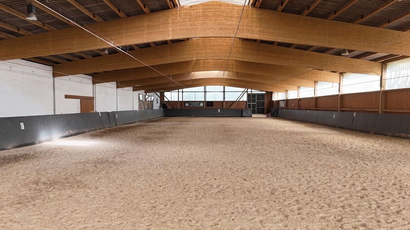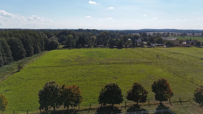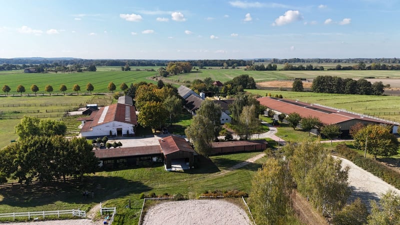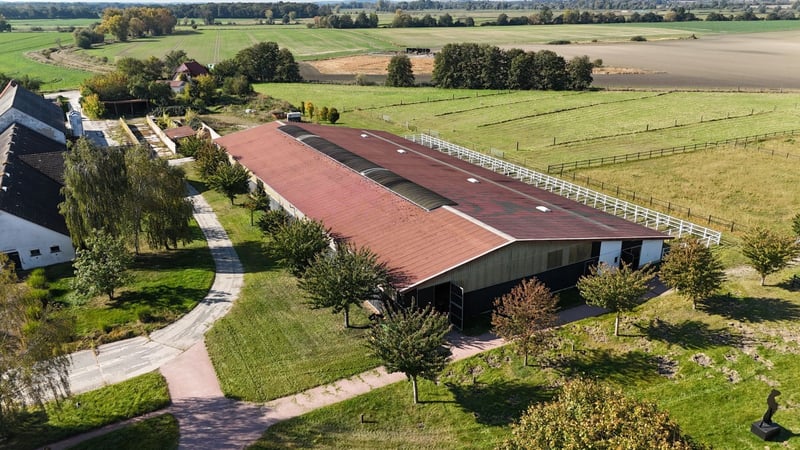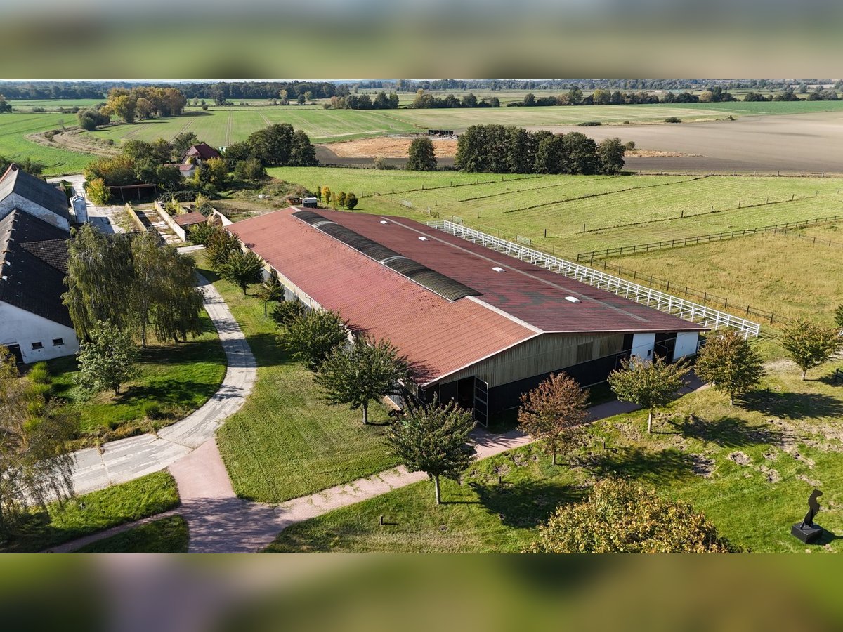Property Description: Stunning Equestrian Facility in Uetz near Potsdam in an absolutely prime location! This impressive riding estate is situated in the municipality of Uetz, just 15 km from the center of Potsdam and in close proximity to the Berliner Ring. With excellent connectivity via the A10 motorway and B273 federal road, the location is ideal for horse enthusiasts and equestrian sports enthusiasts looking to benefit from the region’s advantages. The property spans 16 hectares, including 12 hectares of pastureland, providing ample space for versatile horsekeeping. Land Parcels and Building Facts: The estate comprises six contiguous parcels within plot 1 of the Uetz district. Due to its location in the rural zone (§35 BauGB), the existing buildings enjoy legal protection. Extensions or changes in use are limited to permitted modifications, ensuring a stable investment. Structural Details: The estate includes: - Large Indoor Riding Arena (Building 1): 67 m x 23 m, adjacent to a box corridor with 20 paddock boxes and 9 box stalls. Equipped with tack room, wash areas, and solarium. - Stable and Barn (Building 2): Originally a cattle barn, most recently used as a horse stable, now serving as storage. - Horse Stable (Building 3): Solid, single-story structure with 12 individual boxes. - Small Indoor Arena (Building 4): With exercise hall and 12 individual boxes, including outdoor turnout areas. - Multi-purpose Building (Building 5): Infrastructure rooms with a lounge, sanitary facilities, stable office, kitchen, and basic staff accommodation. Training Facilities Overview: The estate offers extensive training options, perfectly suited for dressage and show jumping riders, leaving no wish unfulfilled. - Indoor Arenas: - Arena 1: 67 m x 23 m - Arena 2: 45 m x 16 m - Riding Arenas: - Arena 1: 40 m x 20 m - Arena 2: 60 m x 20 m - Arena 3: 80 m x 20 m - Arena 4: 75 m x 30 m All training areas are equipped with irrigation systems and lighting, and feature high-quality, well-maintained riding surfaces. Stabling Overview: - Paddock Boxes: 20 - Indoor Boxes: 21 - Outdoor Boxes: 12 - Total Number of Stalls: 53 - Open Stable: 2 Property Area: - Pastureland: 12.0572 hectares - Built-up and Other Land: 4.1852 hectares Summary: This Uetz equestrian estate offers not only top-tier training facilities and spacious stables but also an idyllic setting with excellent connections to Berlin and Potsdam. Seize the opportunity to invest in a unique property suitable for both private riding and commercial use. Arrange a viewing today and discover the potential of this exceptional riding estate! Additional Facilities: An extension with an office and lounge provides a space for administrative activities as well as a meeting and relaxation area for riders and visitors. Location: The estate is situated in a secluded location, approximately 150 meters north of the village outskirts of Uetz, surrounded by extensive greenland. This peaceful environment creates optimal conditions for horse care and training, offering a relaxed atmosphere for riders and visitors. Berlin (city center) is approximately 25-30 km away, and Potsdam is reachable within 12-13 km. Especially for tournament riders and professionals, this equestrian facility is highly attractive due to its connectivity and location, representing a unique opportunity. A proof of capital is required prior to viewing the property. A comprehensive exposé with additional images and information will be sent upon request.