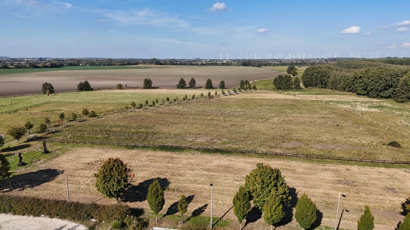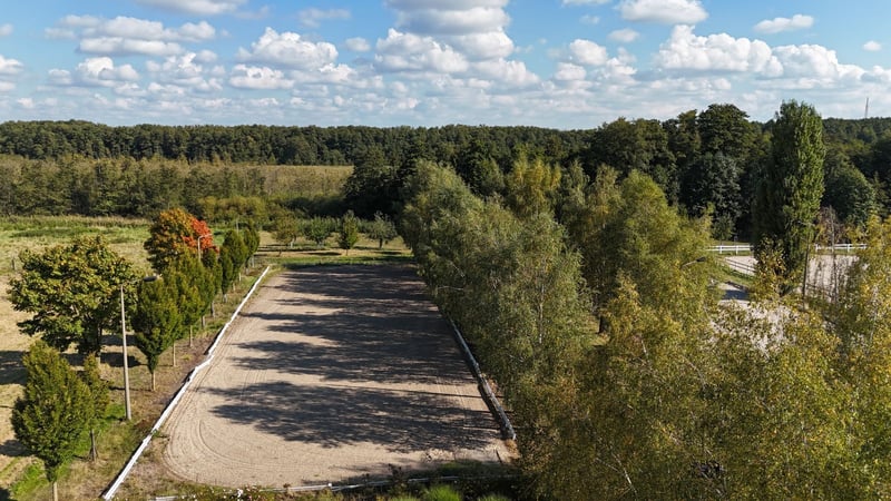 Opis nieruchomości: Przepiękny kompleks jeździecki w Uetz pod Poczdamem, w absolutnie doskonałej lokalizacji! Ten imponujący obiekt znajduje się w gminie Uetz, zaledwie 15 km od centrum Poczdamu i w bezpośrednim sąsiedztwie obwodnicy Berlina. Dzięki doskonałej komunikacji via autostrada A10 oraz droga krajowa B273, lokalizacja jest idealna dla miłośników koni i jeździectwa, którzy chcą korzystać z uroków regionu. Działka o powierzchni 16 hektarów obejmuje 12 hektarów pastwisk, zapewniając wystarczająco miejsca na różnorodną hodowlę koni. Działki i dane budowlane: Obiekt składa się z sześciu sąsiadujących działek w obrębie ewidencyjnym Uetz, w jednostce ewidencyjnej 1. Ze względu na położenie na terenach niezurbanizowanych (§35 BauGB), istniejący budynek objęty jest ochroną prawną. Rozbudowa lub zmiana przeznaczenia są ograniczone i możliwe do zatwierdzenia, co czyni tę inwestycję stabilną. Szczegóły budynków: Obiekt obejmuje: - Dużą halę ujeżdżeniową (budynek 1): 67 m x 23 m, przylegającą do padoku z 20 boksami typu paddock i 9 boksami wewnętrznymi. Wyposażoną w szatnię na siodła, miejsca mycia i solarium. - Stajnię i stodołę (budynek 2): Pierwotnie obora dla bydła, ostatnio użytkowana jako stajnia dla koni, obecnie jako magazyn. - Stajnię koni (budynek 3): Solidny, jednokondygnacyjny budynek z 12 boksami pojedynczymi. - Mniejszą halę ujeżdżeniową (budynek 4): Z halą ruchową i 12 boksami, z dostępem do wybiegu na zewnątrz. - Budynek wielofunkcyjny (budynek 5): Infrastruktura z kasynem, sanitariatami, biurem stajni, kuchnią i prostym mieszkaniem dla pracowników. Możliwości treningowe: Obiekt oferuje rozbudowane możliwości treningowe, idealne zarówno dla jeźdźców ujeżdżenia, skoków, jak i innych dyscyplin, spełniając wszelkie oczekiwania. - Hale ujeżdżeniowe: - Hal 1: 67 m x 23 m - Hal 2: 45 m x 16 m - Place do jazdy: - Plac 1: 40 m x 20 m - Plac 2: 60 m x 20 m - Plac 3: 80 m x 20 m - Plac 4: 75 m x 30 m Wszystkie obiekty wyposażone są w system nawadniania, oświetlenie oraz wysokiej jakości, zadbany podkład do jazdy. Stajnie i boksy: - Paddock-boxy: 20 - Boks wewnętrzny: 21 - Boks zewnętrzny: 12 - Łączna liczba boksów: 53 - Stajnie otwarte: 2 Powierzchnia działki: - Pastwiska: 12,0572 hektara - Zabudowania i tereny użytkowe: 4,1852 hektara Podsumowanie: Ta jeździecka farma w Uetz oferuje nie tylko doskonałe warunki treningowe i przestronne stajnie, ale także malowniczą lokalizację z świetnym dojazdem do Berlina i Poczdamu. To wyjątkowa okazja inwestycyjna dla osób prywatnych, jak i przedsiębiorców, pragnących rozwijać działalność związaną z jeździectwem. Umów się na prezentację i odkryj potencjał tego niezwykłego obiektu! Dodatkowe udogodnienia: Do kompleksu dobudowano biuro i kasyno, które stanowią zarówno przestrzeń do pracy administracyjnej, jak i miejsce spotkań i relaksu dla jeźdźców i odwiedzających. Lokalizacja: Obiekt znajduje się w odosobnionej lokalizacji, około 150 m na północ od granic Uetz, otoczony rozległymi terenami zielonymi. Spokojne otoczenie tworzy idealne warunki do hodowli i treningu koni, zapewniając relaksującą atmosferę dla jeźdźców i gości. Berlin (centrum) jest oddalony o około 25-30 km, a Poczdam o 12-13 km. Szczególnie dla zawodników startujących na turniejach i profesjonalistów, ta lokalizacja jest wyjątkowo atrakcyjna. Wymagane jest okazanie potwierdzenia posiadania środków przed obejrzeniem obiektu. Pełna oferta z dodatkowymi zdjęciami i informacjami zostanie przesłana na życzenie.