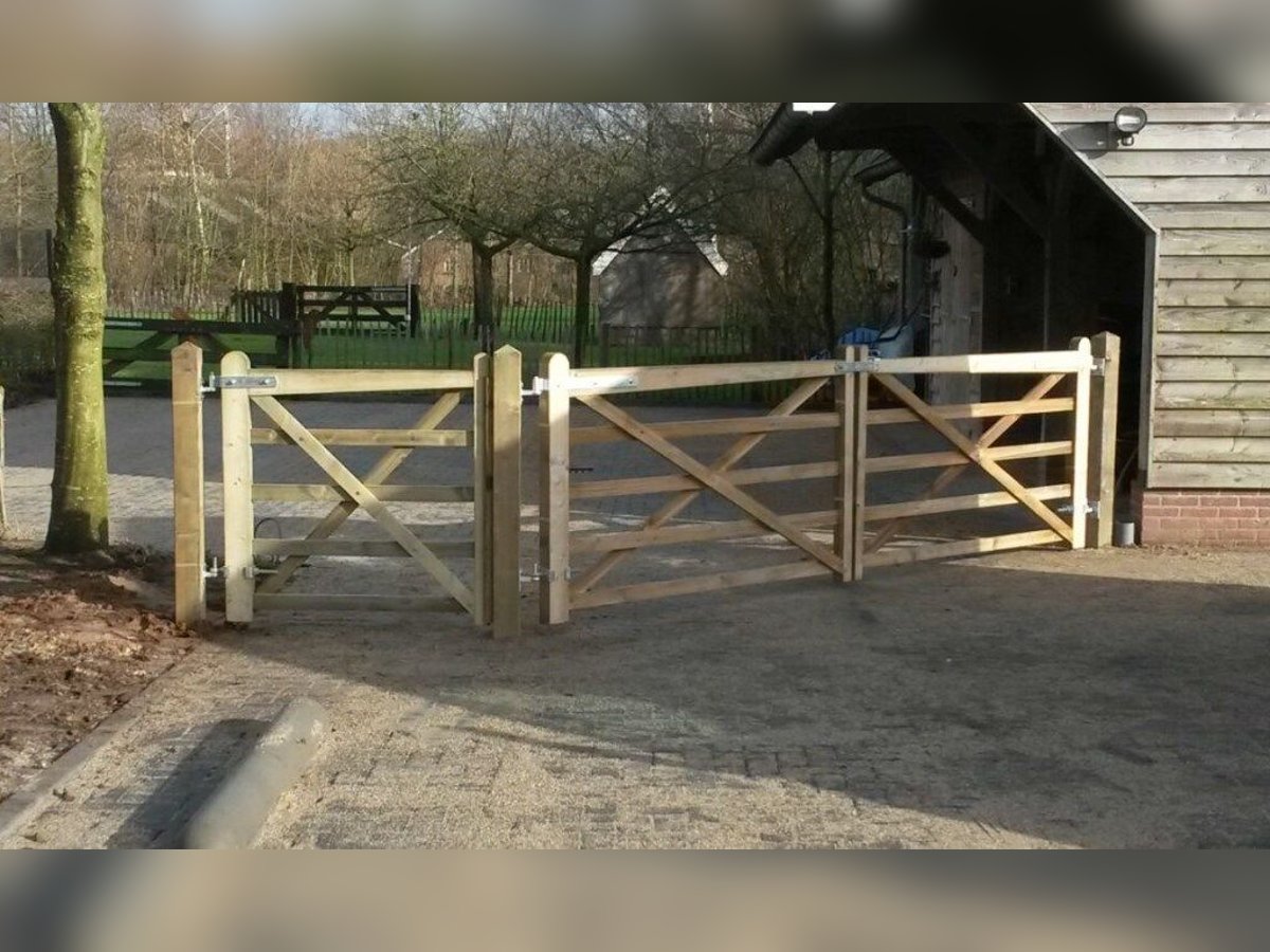 Hohe Qualität | Schnelle Lieferung durch großen Lagerbestand | Problemlos bis nach Deutschland geliefert! Unser Gartenzaun Tor „London” kann durch seine robuste Ausstrahlung gleichermaßen als Begrenzung am Hof und als Koppelgatter dienen. In Kombination mit einem unserer authentischen Zäune ist das Gesamtbild komplett. Dieses Zauntor Garten ist in verschiedenen Breiten erhältlich und kann sowohl links als auch rechts aufgehängt werden. Der schräg verlaufende Querbalken sorgt für wenig Gewicht an den Enden. Dadurch gerät die Hoftore nicht so schnell ins Hängen oder biegt sich durch. Preise pro Zauntor Garten | inkl. 21% MwSt. 120 cm | 189,00 € 150 cm | 221,00 € 180 cm | 249,00 € 210 cm | 285,00 € 240 cm (doppeltkreuz) | 322,00 € 300 cm (doppeltkreuz) | 382,00 € Torpfosten Tanalith-E 250 x 14 x 14 cm (mit Diamantkopf): 60,50 € pro stück Scharniere und Schlösser (Einzeltor): 59,95 € pro Stück Scharniere und Schlösser (Doppeltor): 99,95 € pro Stück Spezifikationen | Zauntor Garten Standardhöhe der Tore: 110 cm Standardzaunhöhe: 120 cm Holzart: PEFC-zertifizierte nordeuropäische Kiefer Imprägnierung: Tanalith-E SERVICE Abholung und Versand sind möglich. Auf Wunsch kann das Gartenzaun Tor auch durch unser Fachteam montiert werden. Kontaktieren Sie uns für ein unverbindliches Angebot oder persönliche Beratung! Besuchen Sie auch unsere Website www.rutjespferdeboxen.de – dort finden Sie eine große Auswahl an Hoftore, Holzzaun und passendem Zubehör! KONTAKT Rutjes Pferdeboxen und Zäune Entersestraat 12 7472 AC Goor (ca. 30 km hinter der deutschen Grenze) Niederlande Tel: 0031/547/381 938 Rutjes Pferdeboxen und Zäune ist seit über 20 Jahren der renommierte Lieferant für Pferdeställe und Weidezäune. Gartentor | Zauntor Holz | Zauntor Garten | Holzzaun | Zauntor | Weidetor | Gartenzaun Tor | Weidezauntor | Tor Holz | Hoftore | Holz Tor | Holztore | Holztor Garten | Hoftor Holz | Holzzaun