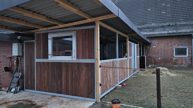 ¿Busca boxes/establo para caballos personalizados pero sencillos? Entonces quizá pueda ayudarle. Le ofrezco construir desde un tabique sencillo hasta un establo para caballos completamente montado, a medida y según sus ideas. No hay piezas estándar, cada box se puede personalizar. He aquí algunas fotos para darle una primera impresión. ¡Si usted está interesado o tiene más preguntas, por favor no dude en ponerse en contacto conmigo por teléfono o preferiblemente a través del formulario de contacto!