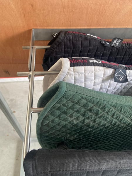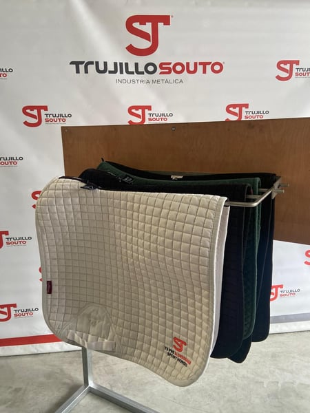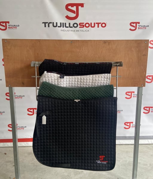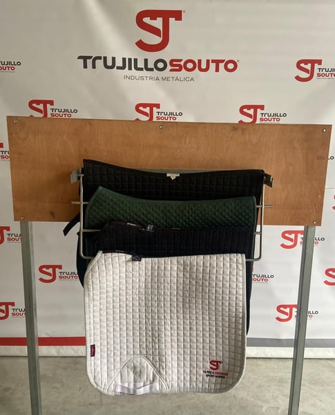 Wieszak na derki idealny do zawieszania derek (również ochraniaczy lub bandaży) w dwóch pozycjach, pozwala na ich oddzielenie, co ułatwia suszenie potu lub po ich wypraniu, lub złożenie, co sprawia, że zajmuje minimalną przestrzeń. Jako produkt ze stali nierdzewnej, pot, woda, piasek... nie powodują korozji. Wykonany w 100% ze stali nierdzewnej jakości AISI 304, spawany metodą TIG z użyciem pręta ze stali nierdzewnej jakości AISI 316.