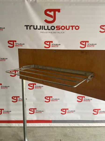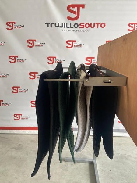 Colgador Mantillas ideal para colgar mantillas (también protectores o vendas) sus dos posiciones, nos permite que queden separadas para facilitar el secado del sudor o después de lavarlas, o plegadas lo que hace que ocupe el mínimo espacio, al ser un producto de acero inoxidable el sudor, agua, arena… no produce corrosión. Fabricado 100% en Acero Inoxidable calidad AISI 304, y soldado a TIG aportando varilla de acero inoxidable calidad AISI 316.